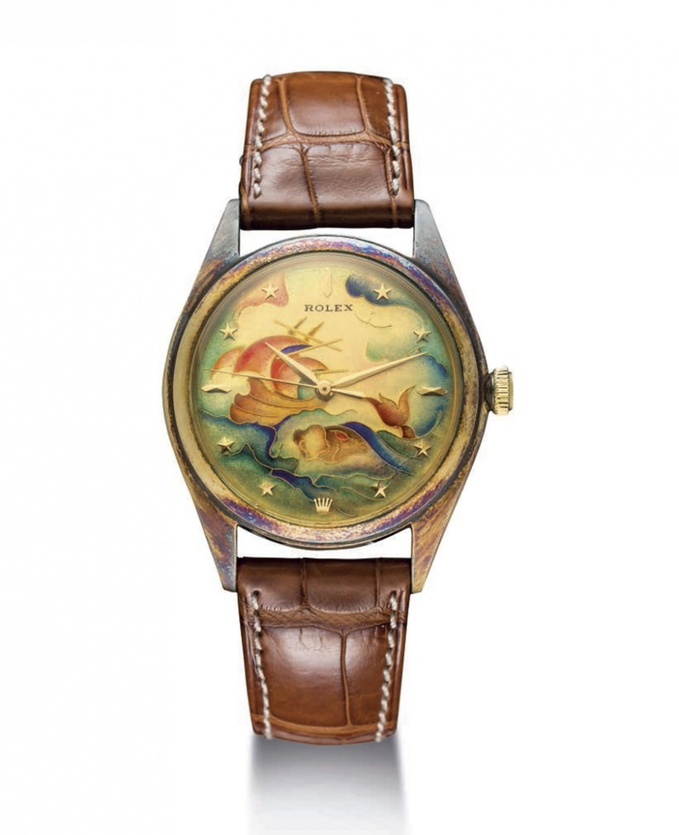 Платиновая модель с минутным репетиром и корпусом формы «подушечка», созданная для Грэйвза в 1927 году, ушла с молотка за сумму 1,340,804 доллара. Данные часы, изображенные на фотографии сверху, обладают серебряным матовым циферблатом, накладными платиновыми цифрами Breguet и малым секундным счетчиком. Задняя крышка гравирована гербом Грэйвза и его девизом: Esse Quam Videri (от лат. "Быть, а не казаться"). Корпус, циферблат и механизм отмечены подписью Patek, Philippe & Co., Geneva, Switzerland. Грэйвз был американским банкиром и коллекционером часов, за свою жизнь он успел приобрести одни из самых потрясающих шедевров Patek Philippe в истории производства. В общей сложности сегодняшний аукцион Important Watches принес прибыль на сумму 26,508,102 долларов. По словам Джона Рирдона и Сэма Хайнса, международных со-руководителей часового отделения Christie’s, выручка примерно на 10% превзошла результат прошлого года. На аукционе были представлены две другие шедевральные модели: еще одни Patek Philippe и Rolex. Вложение 705312 Эти часы Rolex из 18-каратного золота оснащены уникально декорированным циферблатом, выполненным в технике перегородчатой эмали и индексами-звездами. Модель была продана за 1,220,632 долларов, установив новый ценовой рекорд для часов Rolex на аукционах. Вложение 705313 Patek Philippe Sky Moon Tourbillon Ref. 5002 из 18-каратного золота могут похвастаться 12-ю усложнениями, включая минутный репетир, турбийон, вечный календарь, ретроградный указатель даты, лунный календарь, звездное время, карту звездного неба и функцию отображения орбиты Луны. Модель ушла с молотка за сумму 1,020,346 долларов. Вложение 705314 Источник: http://www.hautetime.ru/za-redchajsh...340-804/38709/ |