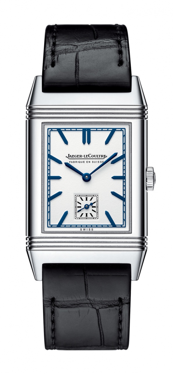 Переворачивающийся на 180 градусов, прямоугольный полированный корпус новинки изготовлен из нержавеющей стали, длиной 46,8 мм, шириной 27,4 мм, толщиной 7,2 мм, 20-миллиметровым расстоянием между ушками, водонепроницаемый до 30 метров. Рифленая заводная головка расположена на 3 часах. Сапфировое стекло защищает циферблат серебристого цвета, с мелкозернистой отделкой, с накладными синими часовыми индексами. Стрелки вороненые, мечевидной форме. Модель оснащена мануфактурным швейцарским механизмом с ручным заводом Jaeger-LeCoultre 822/2, толщиной лишь 2,9 мм, на 21 камне, с балансовой частотой 21600 полуколебаний в час (3 гц), 45-часовым запасом хода, функциями индикации часов, минут (посредством соответствующих центральных стрелок) и секунд (на малом боковом циферблате квадратной формы, расположенном на 6 часах). Калибр отменно отделан и декорирован. Поставляется на черном ремешке из кожи аллигатора с застежкой из нержавеющей стали. Модель доступна исключительно в бутиках Jaeger-LeCoultre. Вложение 705388Вложение 705389 Источник: http://forums.timezone.com/index.php...=0#msg_6788786 |