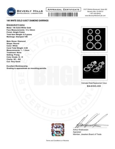 ~~~Серьги BHGL из белого золота с бриллиантами 0,85 карат~~~