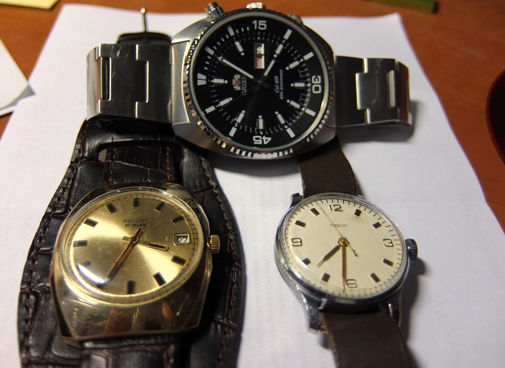 В моем списке не так давно все вернулось на свои места, принеся умиротворение и гармонию. И если двое старичков - Полет и Победа это реальные мои часы из детства-отрочества, то Ориент из юности, не точь-в точь оно самое, конечно, но очень похоже. Подобные часы когда-то были подарены отцу, а он, в свою очередь, подарил их позже мне (как и предыдущие двое, впрочем) и так они мне нравились... м-м-м... :rolleyes: Но в итоге, как обычно - разбил, сломал, потом армия, потом женитьба, жизнь, все завертелось... Были другие, мимоходом все. Потом вот пришла ч/б и вдруг попались на глаза эти Ориенты - как родные братья моих, только чуть крупнее (но и рука у меня подросла) и в черно-белом исполнении супротив моих ярко-синих. И тут что-то защемило, заулыбалось, вспомнилось... Сначала гнал от себя, как очередную блажь, а потом понял, что либо сейчас куплю, либо так и буду вспоминать. http://forum.watch.ru/attachment.php...7&d=1398701774 |