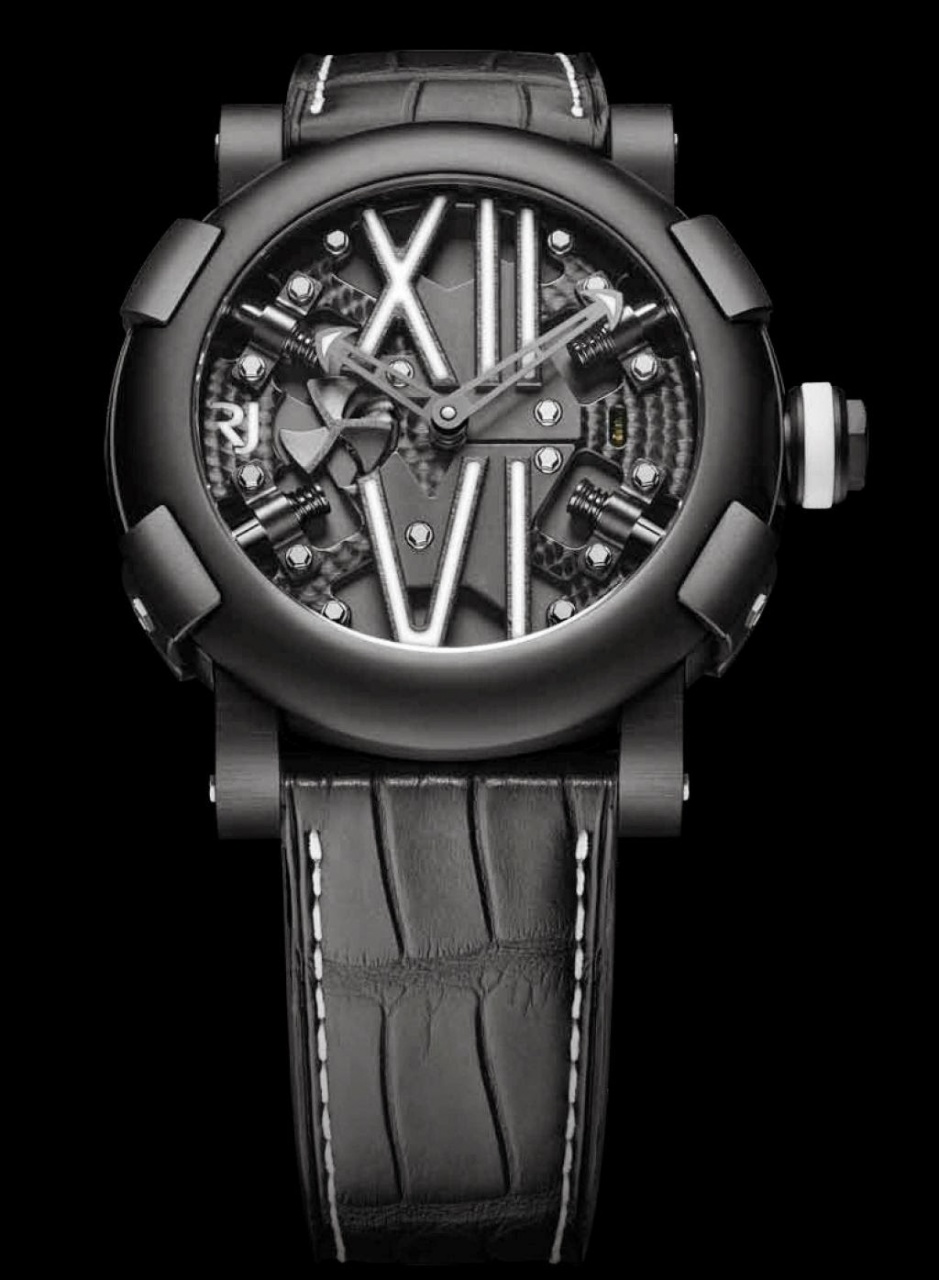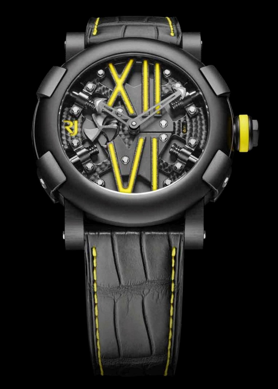 Круглый корпус новинки изготовлен из нержавеющей стали с глягцевым черным PVD-покрытием, диаметром 50,0 мм, водонепроницаемый до 30 метров. На заводной головке, расположенной на 3 часах, имеется резиновая вставка цвета, соответствующего варианту модели. Сапфировое стекло с антибликовым покрытием защищает циферблат, который интегрирован с калибром и выполнен в стиле стимпанк. Обращают на себя внимание крупные цифры "XII" и "VI", покрытые, как и логотип бренда Romain Jerome, ярким лаком красного, оранжевого, желтого, белого, зеленого или синего цвета. Часовая и минутная стрелки скелетонизированные, с люминесцентным покрытием белого цвета. Модель оснащена швейцарским автоматическим механизмом Romain Jerome RJ001-AS, на 23 камнях, с балансовой частотой 28800 полуколебаний в час (4 гц), запасом хода 42 часа, функциями индикации часов, минут (посредством соответствующих центральных стрелок) и секунд (посредством соответствующей стрелки, выполненной в виде пропеллера, расположенной на 9 часах). Поставляется на черном ремешке из кожи аллигатора с прошивкой оранжевого, желтого, белого, зеленого или синего цвета с раскладной застежкой из нержавеющей стали с черным PVD-покрытием. Цена модели составляет $ 16950. Вложение 717787Вложение 717788Вложение 717789Вложение 717790Вложение 717791 Источник: http://www.masterhorologer.com/2014/...urce=BP_recent |
