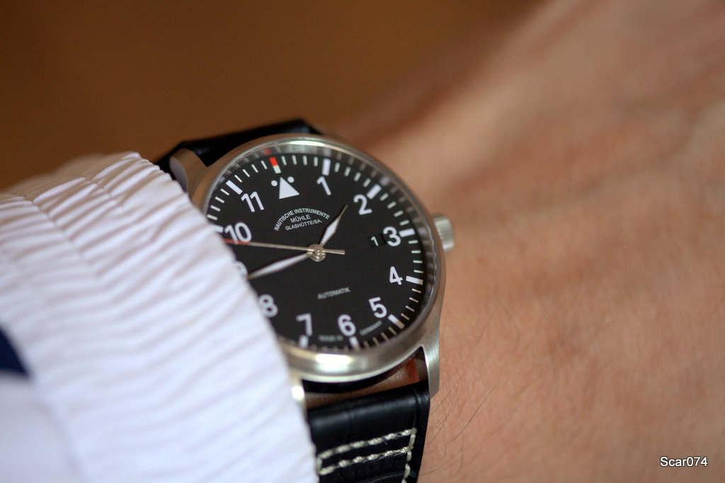 Nautische Instrumente Mühle Glashütte Sporty Instrument Watches Terrasport II ref. M1-37-44-LB. http://forum.watch.ru/attachment.php...4&d=1401621389 Краткая история часовой марки: Компания «Nautische Instrumente Mühle Glashütte» была основана в 1994 году Гансом-Юргеном Мюле, отцом нынешнего генерального директора завода Тило Мюле. Однако, семья Мюле имеет более чем 140-летний опыт изготовления измерительных приборов потому, что корни семейного бизнеса уходят на пять поколений - вплоть до 1869 года, когда Роберт Мюле основал собственную компанию. (с) Как производитель дорабатывает механизмы ЕТА: Благодаря запатентованной системе woodpecker ( шея дятла ) лучше и точнее регулируется точность хода , а так же надёжней фиксируется градусник баланса , что позволяет удерживать точность хода на заданном уровне при сильных нагрузках , встрясках и т.д ( Muhle Glashutte регулирует свои часы ( механизмы ) в шести положениях в собранном виде с точностью от 0 + 8 сек в сутки ) (с) Mühle Glashütte Terrasport II яркие представители так называемых часов для авиаторов, плавно трансформировавшиеся в спортивные часы. http://forum.watch.ru/attachment.php...2&d=1401621454 Механизм: Mühle version SW 200-1, automatic, with woodpecker neck regulation, own rotor and characteristic surface finishes. Stop-second. Fast date correction. 38-hr power reserve. Корпус: Brushed stainless steel. Anti- glare sapphire crystal. Transparent case back. Screw-in crown. Ø 40.0 mm; H 10.0 mm. Water-resistant to 10 bars (100м). Super LumiNova coated hour numerals, hour indices and hands. http://forum.watch.ru/attachment.php...3&d=1401621475 Поставляется на стальном браслете или кожаном ремешке. http://forum.watch.ru/attachment.php...1&d=1401621389 "Пилотское наследие" запечатлено на циферблате часов в виде всем знакомого треугольника с точками. Пуританская черно-белая внешность немецких пилотов несколько разбавляется контрасными, ярко красными элементами: кончик секундной стрелки и половина часового маркера на "12". Скромные сатинированные часы в небольшом 40мм корпусе, толщиной 10мм. В глаза не бросаются. Зато и под манжет рубашки легко входят. Часы легкие. Очень хорошо читаемые показания. В темноте светятся, за это отвечает покрытие маркеров и стрелок светонакопительным составом Super LumiNova. Заводная головка закручивается, влагозащита 100м. Что для авиаторов очень хорошо. А для спортивных часов уже не очень. Безель отсутствует. Стекло сапфир. Тыльная сторона часов прозрачная, стекло также сапфировое. Производителям есть что показать, в этих часах конечно не мануфактурный механизм, но хорошо доработанная ЕТА. Благодаря доработкам и конечно благодаря надежному и обкатанному механизму точность часов укладывается в стандарты COSC, хотя производитель и не сертифицирует свои механизмы. Пока про точность говорить рано, но как правило в процессе приработки на новых часах она увеличивается. Хотя уже сейчас впечатляющая. Заводная головка на резьбе. http://forum.watch.ru/attachment.php...5&d=1401621423 При закручивании головки до упора, мельница занимает правильное положение. http://forum.watch.ru/attachment.php...6&d=1401621423 Super LumiNova http://forum.watch.ru/attachment.php...2&d=1401621389 Застежка на ремне подписана. http://forum.watch.ru/attachment.php...7&d=1401621423 Через тыльный сапфир можно рассмотреть доработанный Mühle Glashütte часовой механизм SW 200-1. http://forum.watch.ru/attachment.php...1&d=1401621454 http://forum.watch.ru/attachment.php...9&d=1401621454 http://forum.watch.ru/attachment.php...0&d=1401621454 http://forum.watch.ru/attachment.php...8&d=1401621423 Ну раз это спортивные часы, получайте фото в спортивном костюме. ;) http://forum.watch.ru/attachment.php...4&d=1401621475 |