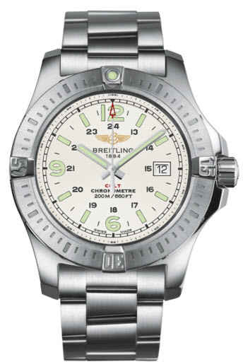 Совершенно случайно узнал, что появился новый Breitling Colt 44 (ref. А7438811), и даже подержлал его в руках :). Сделал несколько фотографий телефоном, так что прошу простить за качество. Каждый сделает свои выводы, но на мой взгляд это одно из лучших, что сделал Breitling за последнее время :). Видимо дизайнеры поняли, что от добра добра не ищут и вернулись назад, походу объединив старый дизайн и новый размер. Визуально выглядят меньше предыдущего, имхо. Механизм тот же, SuperQuartz B74 (ETA Thermoline 955.652), герметичность 200м, против 500м у предыдущего. П.С. Даже не знаю, как будет продаваться предыдущая модель, после появления этой :). |