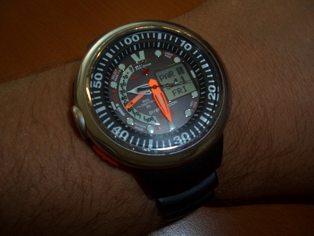 Вложение 22014 Покупал из расчёта иметь адекватные часы для плавания и ныряния. Конечно, штуковина брутальная и огромная, но на моей не самой маленькой руке часы смотрятся нормально. Все функции - нравятся. Точность на уровне. Доволен, одним словом. |