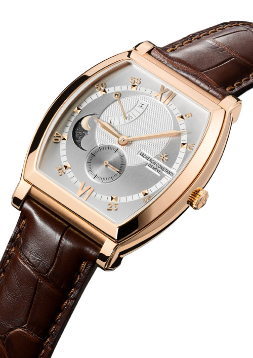 Корпус бочкообразной формы «тонно», объект экспериментов Vacheron Constantin с 1912-го года. В 1889 году женевская мануфактура выпустила свои самые первые наручные часы, а также начала осваивать новые стилистические подходы, следуя основным течениям в искусстве, характерным для начала 20-го века. Последовательно совершенствуя, закругляя, удлиняя или укорачивая корпус в соответствии с дизайном механизма, дом Vacheron Constantin уже в 1912 году представил отступления от неизменно круглого дизайна корпусов, начав работу со знаменитой бочкообразной формой, известной также как «тонно». Линия Malte основана в результате нового взгляда дизайнеров Дома на бочкообразную форму часов. Будучи преданным хранителем незыблемых традиций женевского часового ремесла с 1755 года, Vacheron Constantin обладает уникальным наследием, которое являет собой неисчерпаемый источник вдохновения для современных творений, таких как новая модель линии Malte. Крупный корпус (39 на 49 мм), оригинальные ушки веерообразной формы, отчетливый графический дизайн циферблата и граненые часовые стрелки в форме кинжалов – благодаря всему этому новая модель Malte обязательно станет предметом восхищения даже для самых требовательных ценителей. Бочкообразный корпус служит обрамлением для восхитительно гармоничного циферблата из посеребренного золота, что создает идеальный баланс между высокотехничным и традиционным часовым ремеслом. Этот циферблат декорирован пятью различными вариантами отделки, и все они требовали высокого мастерства. Внутренняя его часть выделяется выполненным вручную тонким посеребренным гильошем «Clous de Paris», или «парижские гвозди». Внешняя часть украшена вертикальным сатинированием, которое также посеребрено. Деления минутной шкалы и индикатора запаса хода, а также надписи Vacheron Constantin Genève и Swiss Made нанесены посредством декалькомании, а дополнительный секундный циферблат в положении «6 часов» декорирован круговым сатинированием. И, наконец, сама минутная шкала и индикатор запаса хода изготовлены методом трафаретной печати в белом цвете. Индикатор фаз Луны воплощает в себе искусное сочетание технологий и мастерства и состоит из диска с гальванизированной основой и изображения Луны из 18-каратного белого или розового золота, в зависимости от модели. Чрезвычайно четкий циферблат, обеспечивающий удобство считывания показаний индикаторов, акцентирован девятью часовыми метками, двумя римскими цифрами и Мальтийским крестом, и все эти элементы изготовлены из 18-каратного белого или розового золота, что также зависит от варианта исполнения. Источником энергии для Malte Moon Phase and Power-Reserve служит калибр 1410 с ручным заводом, полностью спроектированный и изготовленный Vacheron Constantin. Он отмечен престижным Женевским клеймом, знаком качества, которого удостаиваются исключительно механизмы из лучших мастерских Женевы, с особой аккуратностью украшенные ручной отделкой. Обе стороны платины имеют мелкозернистую поверхность и обработанные края, что подразумевает наличие фасок и декоративных параллельных линий, нанесенных с помощью шлифовки. Мосты механизма, также тщательно отшлифованные и со снятыми фасками, украшены гравировкой Côtes de Genève. В дополнение к часовой и секундной стрелке калибр 1410 приводит в движение точный индикатор лунных фаз, настраивать который не придется более ста лет, а