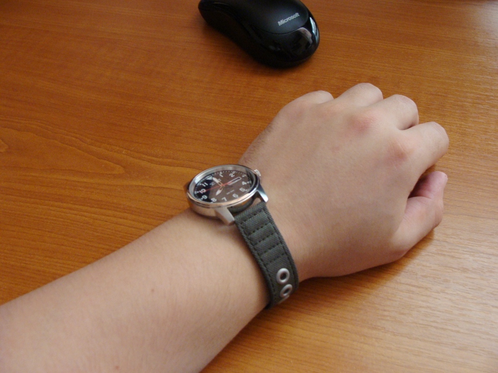 1) Точность хода. За месяц ничего сенсационного не случилось. Да и вообще, с учётом небходимости периодически вручную перескакивать через 31 число, значительное отклонение часов вряд ли когда-либо случится. 2) Люм. Первое впечатление о нём у меня оказалось несколько преувеличенное. Он, конечно, сильно зависит от количества света в течении дня. После большого количества естественного солнечного света ночь держит хорошо. В пасмурный день при исключительно искусственном свете и попадая периодически под длинный руках одежды - заметно печальнее. 3) Часы и вода. Пару раз при мытье рук часы были хорошенько облиты водой. Самим часам, понятное дело, всё равно, ремешок высох довольно быстро, но и пока он был мокрый благодаря подкладки из кожи никакого дискомфорта не было. 4) Ремешок. Вот только что наконец заказал натовский, пока же заметил один неприятный момент с посадкой часов, может, и не связанный именно с ремешком, но тем не менее. Часы постоянно перекручивает на запястье и они съезжают с центра запяться по направлению к мизинцу. Попытаюсь проиллюстрировать: Вложение 746708 5) Корпус. Часы начали собирать мелкие царапины и уже получили пару отметин посерьёзнее. Опять-таки, ничего серьёзного, слава богу, все они пришлись на корпус, а не на кристалл. Вот покажу пока что самую заметную, предположительно, полученную при столкномении с дверным косяком. Вложение 746707 Вот так. Следующее дополнение после получения нового ремешка. |