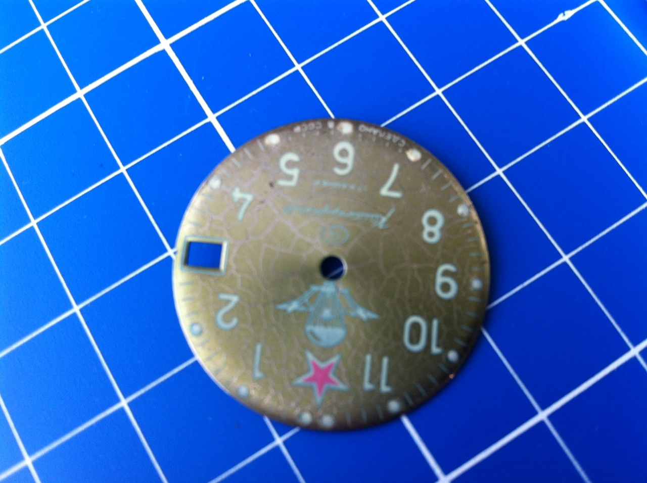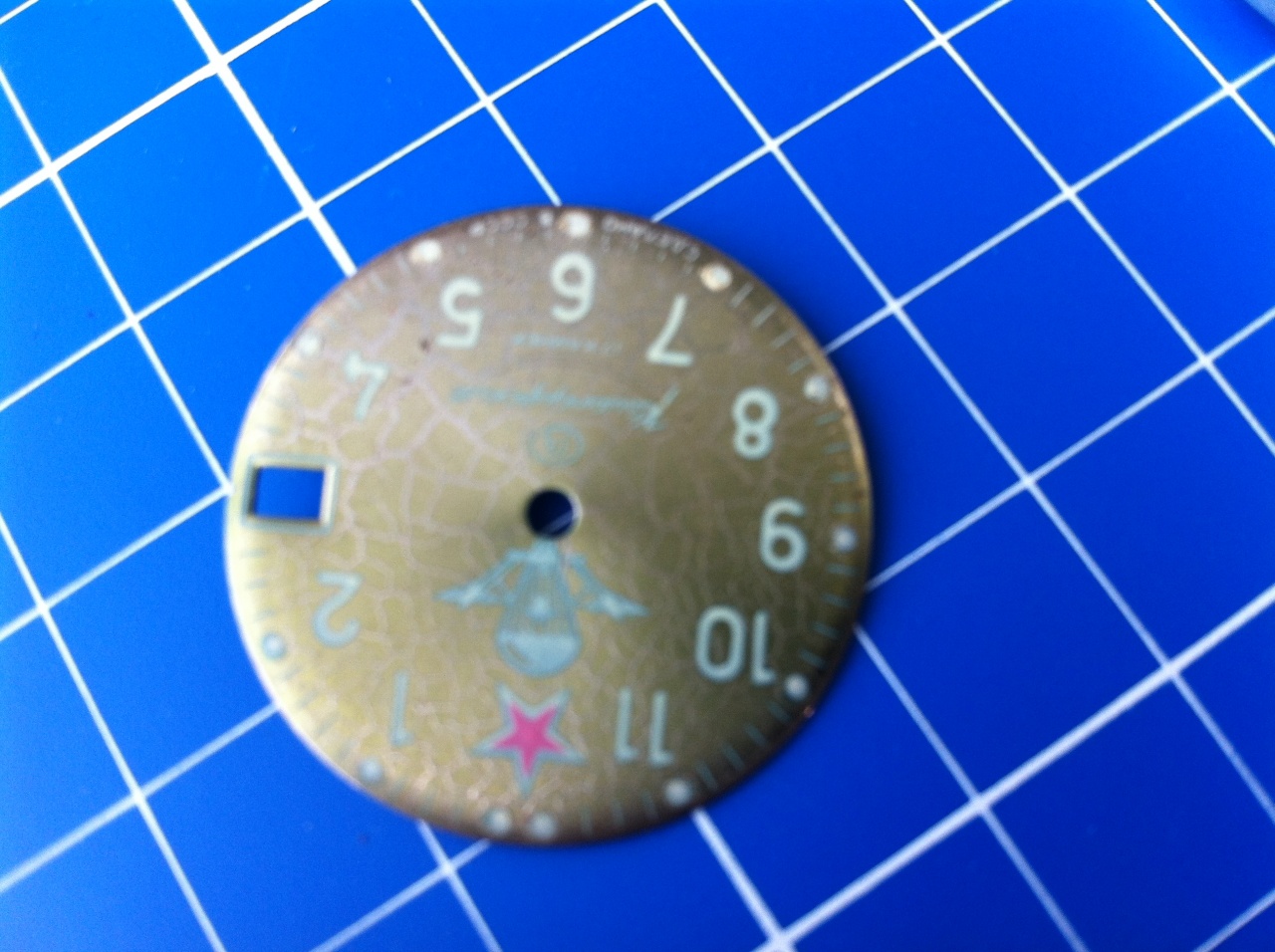 ?с когда такие выпускались (или года), нет надписей типа, сделано или по заказу.? На задней крышке нет номера, но место для него есть. И циферблат в трещинках (как кракелюр), хотя на цифры и иные белые надписи они (трещинки) не заходят. Безель отсутствует (предусмотрен). Спасибо. P.S. Почему не написано где сделано или по какому заказу. Обычно подобное пишется.? |