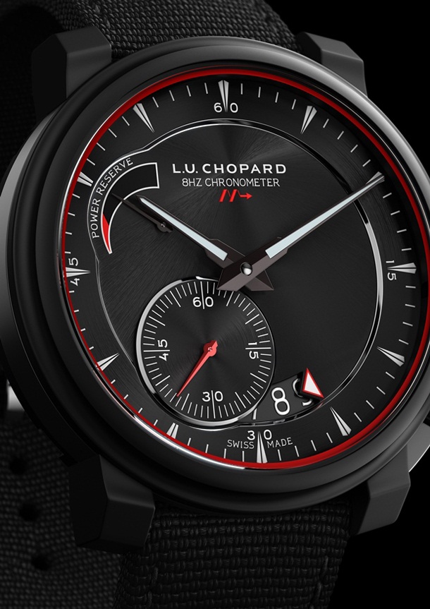 Chopard дебютирует второй интерпретацией своих часов 8HF. В 2012 году, Chopard LUC 8HF (8 Гц "Высокочастотный») содержали первый в истории механизм с высокочастотным спуском (8Hz/57, 600 ударов в час), с хронометром сертифицированным COSC (типичный часовой механизм работает на 4 Гц или менее). Многие детали 8HF этого года очень похожи на версию 2014 года, за исключением размера корпуса, который теперь составляет 42 х 11.2 мм, изготовлен из черной керамики (в отличие от первоначальной версии 8HF, которая была из титана), с индикатором запаса хода на циферблате.