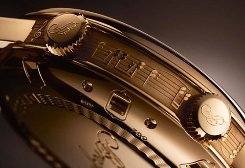 Появление этой модели наделало в прессе много шума. Стоит отметить, что этот шедевр часового производства не только показывает время, но и имеет запатентованный музыкальный механизм. Сегодня компания Breguet счастлива представить новую версию этих потрясающих часов. Этот страж времени из розового золота имеет встроенный механизм с автоподзаводом, включающий швейцарский спуск баланса с прямым анкерным ходом и плоскую спиральную пружину из кремния. К слову, если кнопка хронографа, расположенная на 10-ти часах, нажата или время настроено заранее LA MUSICALE играет мелодию Йогана Себастьяна Баха «la Badinerie», заключительную часть сюиты № 2 для оркестра в си миноре. Такая хитрость удалась благодаря механизму, сходному с устройством музыкальной шкатулки, где диск со штырьками заменяет традиционный цилиндр и поочередно взаимодействует с 15 зубьями металлической гребенки.