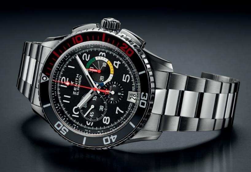 Новая модель наручных часов EL Primero Stratos Flyback Rainbow является репликой исторической пилотской модели Rainbow Flyback, которая была разработана швейцарской часовой компанией ZENITH еще в 1997 году специально для BBC Франции, и была оснащена мануфактурным калибром хронографа El Primero с функцией Flyback.