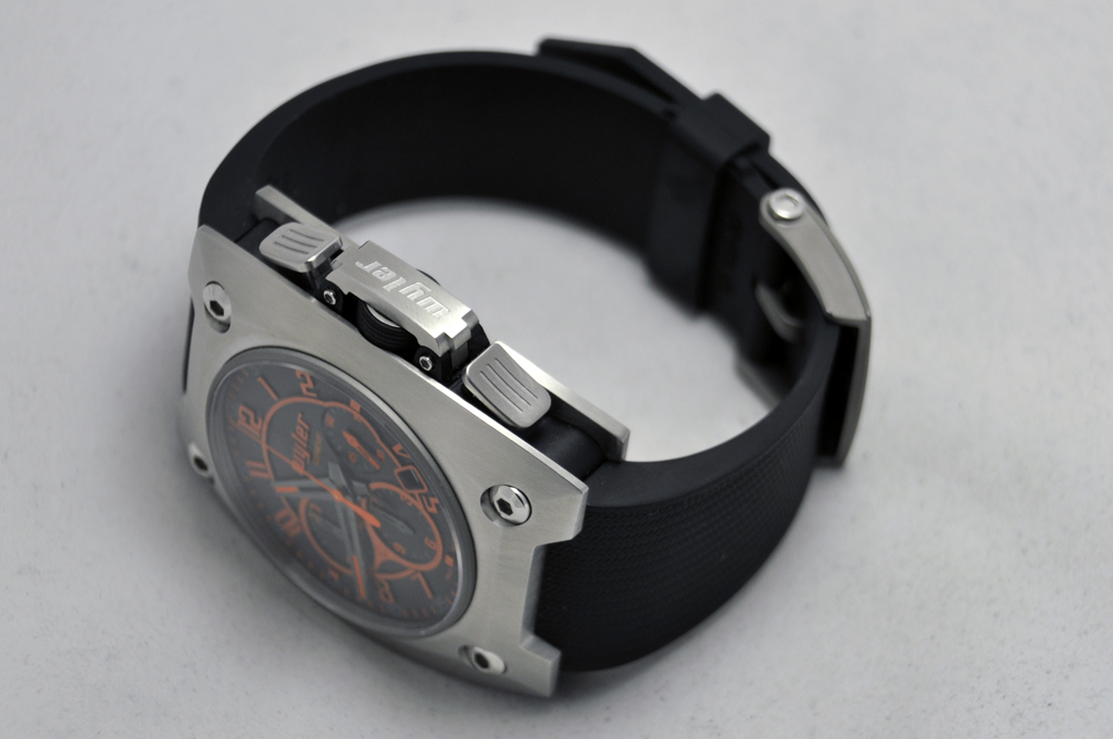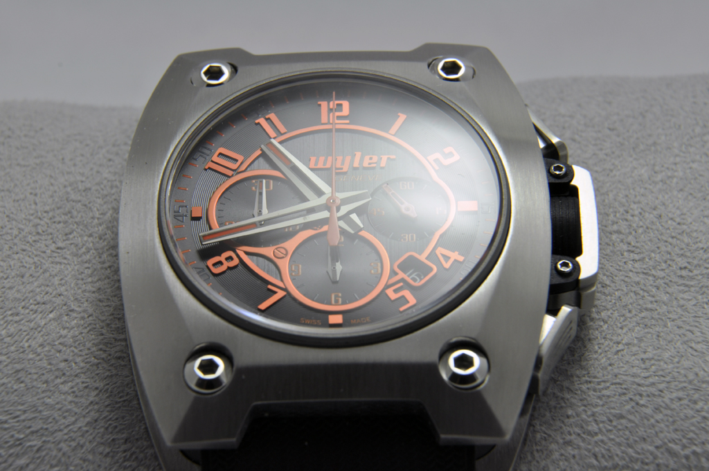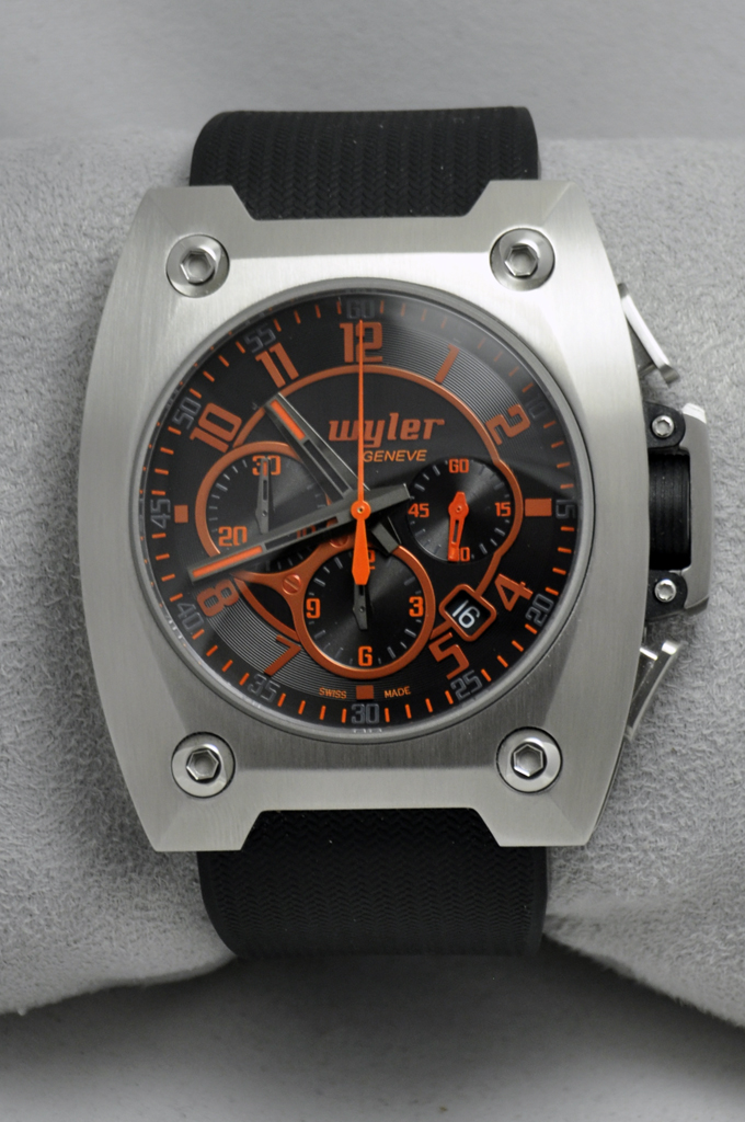 Противоударный хронограф Wyler Code R, черное лицо и каучук, оранжевые метки