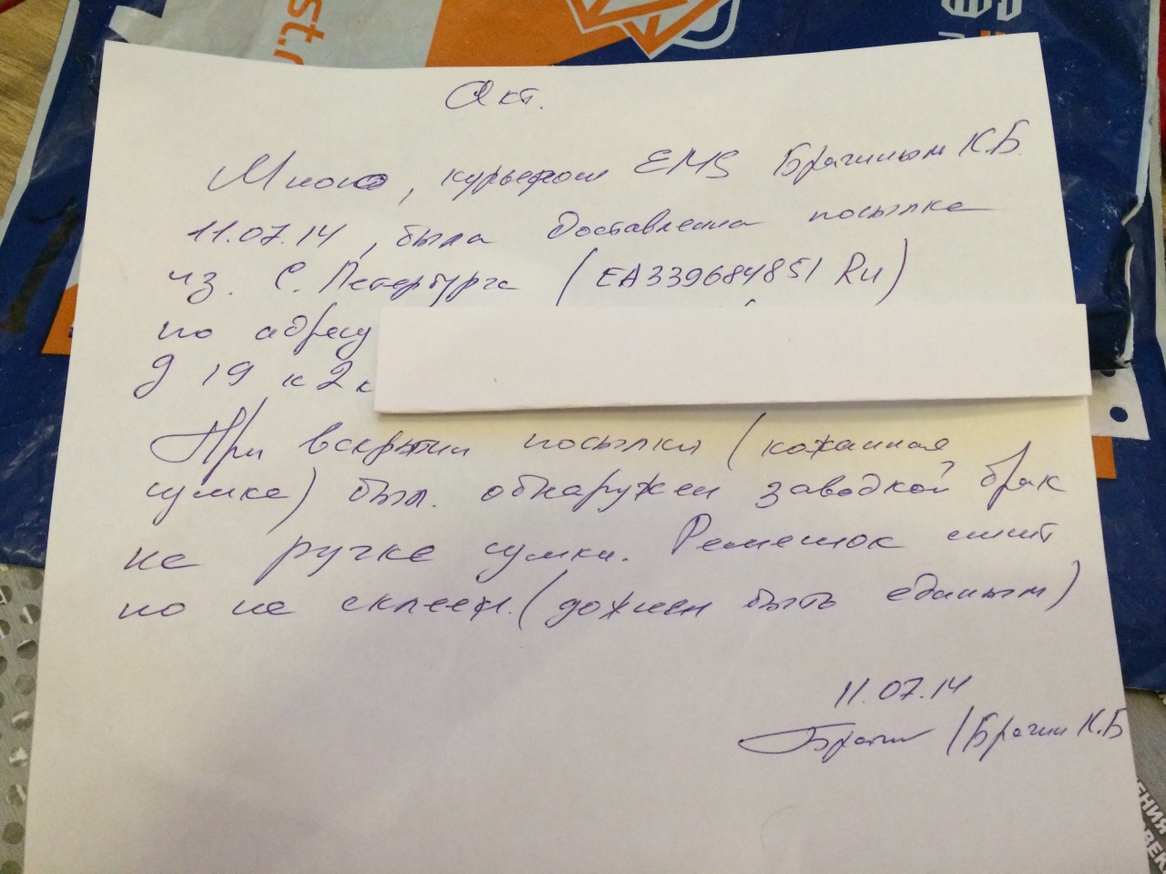 Приобрел у него Женскую сумку Burberry (http://forum.watch.ru/showthread.php?t=208698) Сумка пришла ко мне и она оказалась не надлежащего качества, имела явно выраженный брак, о котором продавец умолчал. Дефект сумки (ремня) виден на фото, которые я сделал после получения товара. http://forum.watch.ru/album.php?albumid=6878 Товар был выслан продавцом в мой адрес наложенным платежом и при осмотре товара при получении брак сразу был выявлен и курьер составил об этом акт (сдать товар сразу обратно возможности не было - со слов курьера почтовой службы EMS). О браке я незамедлительно сообщил продавцу, однако вначале получил от него ответ, что никакого брака не было, а после предъявления мною фотографий - продавец на сообщение не ответил. Вложение 753598 Вложение 753599 [ATTACH]753600[/ATTACH Вложение 753601 |