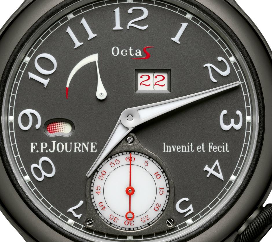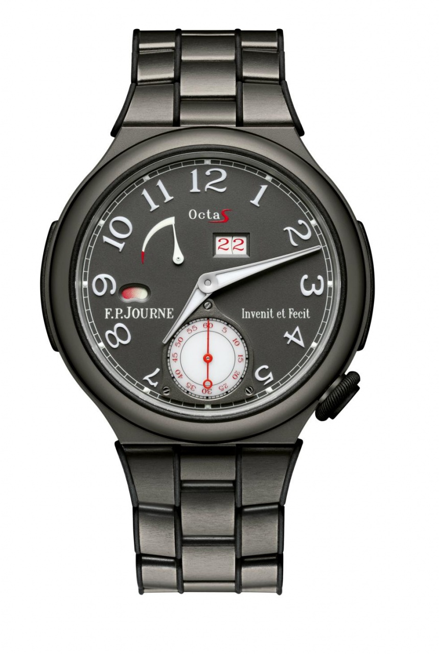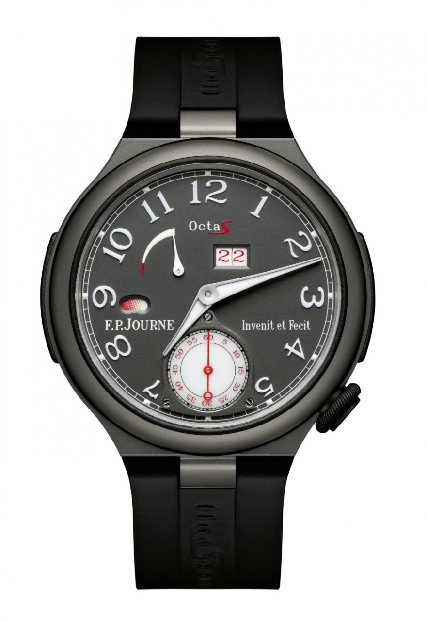 Новая модель Octa Sport Titanium от швейцарской часовой компании F.P. JOURNE имеет круглый корпус, изготовленный из титана 5 класса с резиновыми вставками, диаметром 42,0, толщиной 11,60 мм. Рифленая заводная головка расположена на 4 часах. Сапфировое стекло установлено на лицевой стороне корпуса и на его задней крышке. Циферблат серый, с арабскими цифрами, часовыми индексами, часовой и минутной стрелками, покрытыми белым люминесцентным составом Superluminova.