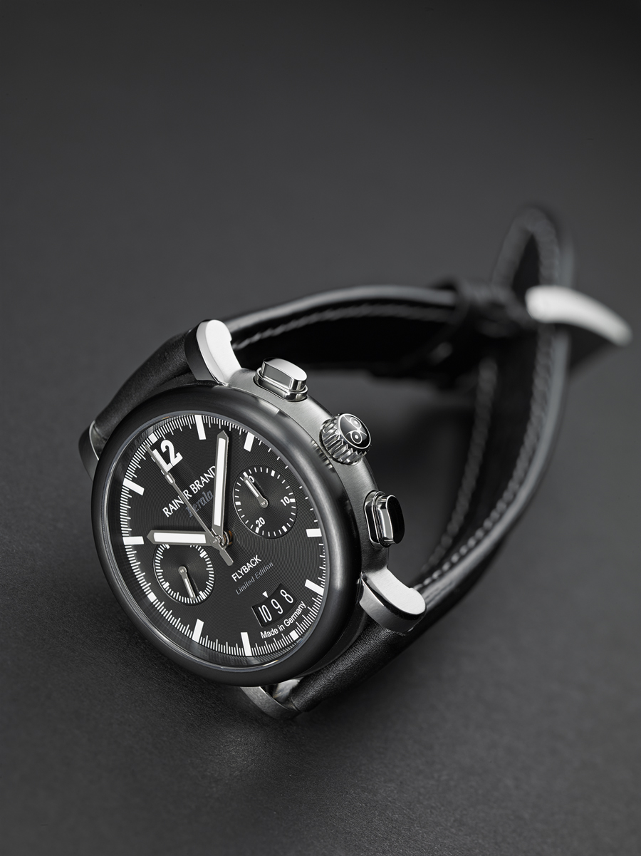 Модель оснащена модифицированным швейцарским автоматическим механизмом ETA Valjoux 7750, с функциями индикации часов, минут(посредством соответствующих центральных стрелок), секунд (на малом боковом циферблате, расположенном на 9 часах), даты (посредством соответствующего цифрового указателя в апертуре, расположенном на 6 часах), а также с Flyback-хронографом (центральная секундная стрелка и 30-минутный счетчик, расположенный на 3 часах). Поставляется на черном кожаном ремешке с застежкой из нержавеющей стали. Модификация калибра и сборка часов производились в мастерской бренда в Heimbuchenthal около Aschaffenburg. Лимитированный выпуск по 250 экземпляров ежегодно. Цена модели составляет 5400 евро. Источник: http://www.watchtime.net/nachrichten...erala-flyback/ |