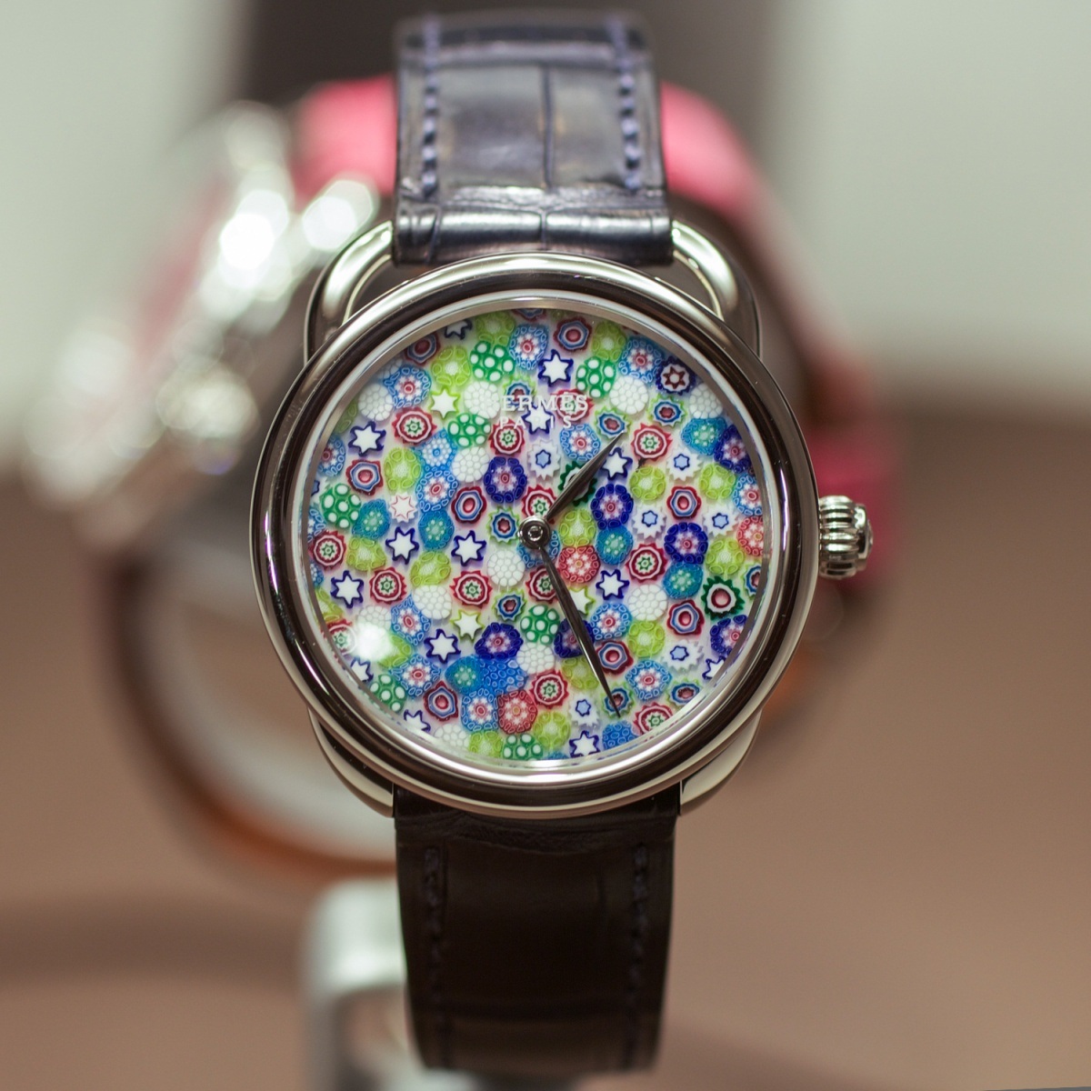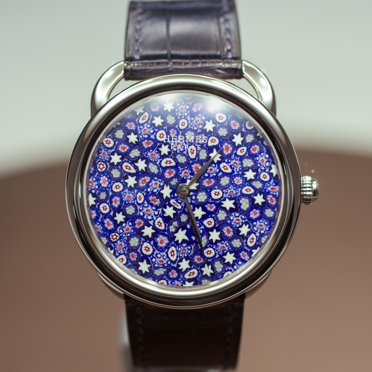 В 1993 году глава Hermes спас от неминуемого разорения старейшую стекольную фабрику Франции. Это доброе дело, совершенное Жаном-Луи Дюма по личной просьбе одного из высоких чинов во французском правительстве, недавно дало неожиданные всходы в часовом департаменте компании. Hermes использовала умения стеклодувов Cristalleries Royales de Saint-Louis для украшения часов Arceau, которые получили яркие стеклянные циферблаты, исполненные в старинной технике миллефиори (переводится с итальянского как «тысяча цветов»).