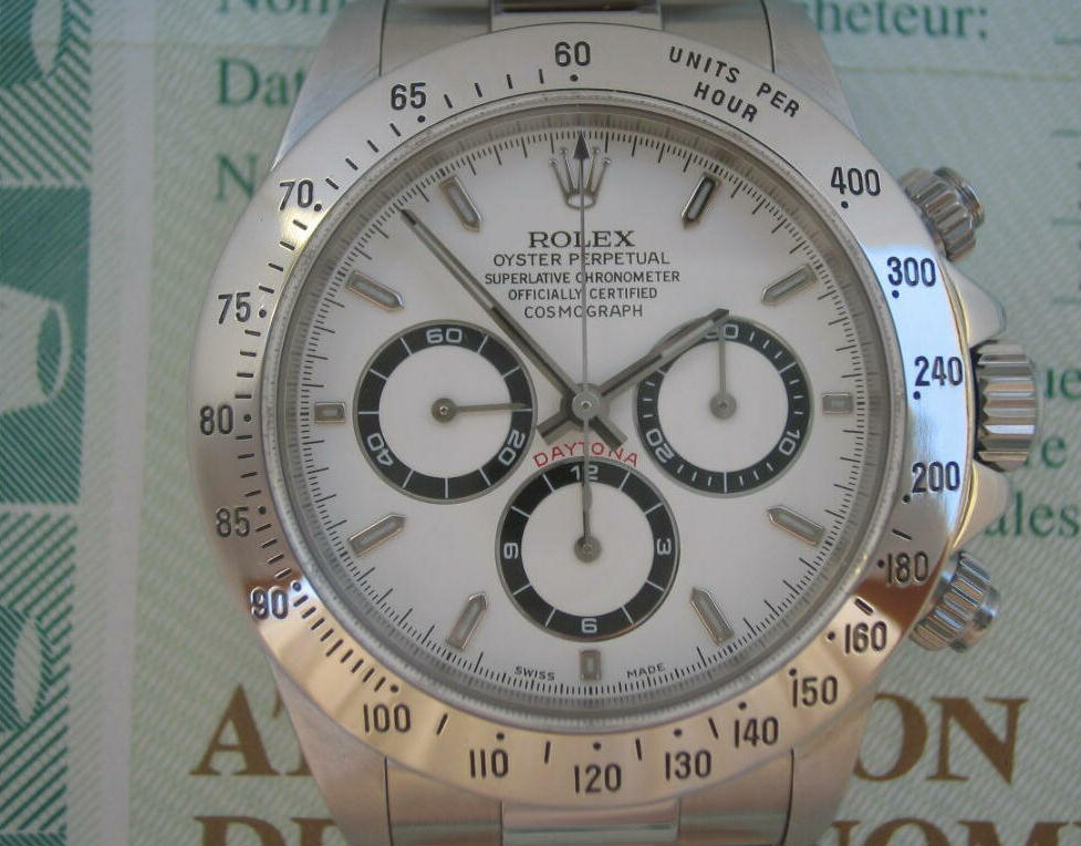 здесь центры циферблатов на 9 и 3 часах находятся на одной прямой с центром основного циферблата (на новых Дайтонах они чуть приподняты) такое было на Дайтонах с калибром 4030 (база Зенит), но только маленькая секунда у оригинала на 9 часах, а не на 6-ти, а 12-часовой накопитель - на 6-ти Вложение 764121 у Дайтон на 4030 не было таких широких часовых меток, такие метки уже идут на новых Дайтонах на 4130: Вложение 764122 и расположение счетчиков такое же, как на ваших, но на оригинале они чуть смещены вверх относительно центра циферблата: Вложение 764123 да и по качеству штамповки стрелок видно неладное ну и надпись на крышке: для такого консерватора, как Ролекс, это святотатство |