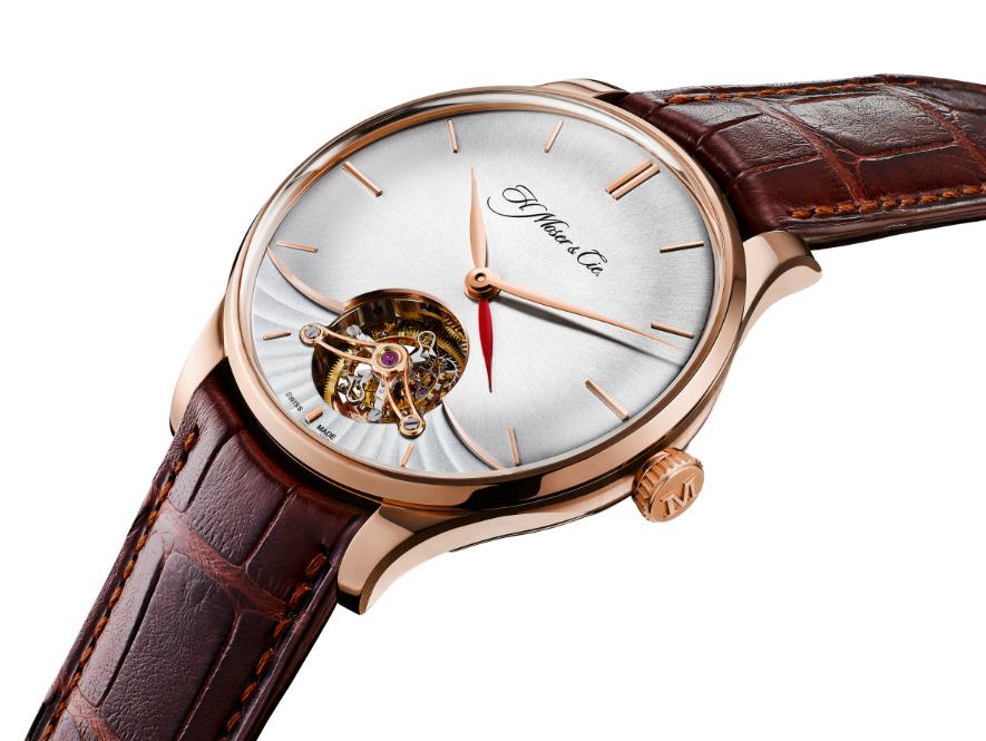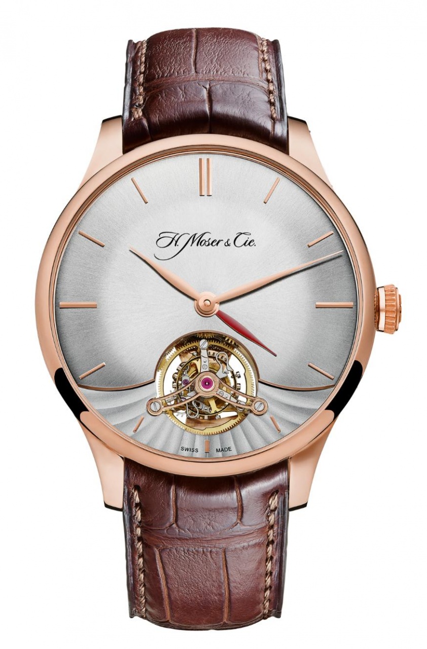 Новая модель Venturer Tourbillon Dual Time от швейцарской часовой компании H. Moser & Cie. отличается тем, что является первыми часами бренда с первым турбийоном собственной разработки. Модель выпускается в трех версиях: в 18-каратном белом золоте, с циферблатом серого цвета, с черным ремешком (Ref. 2802-0200), в 18-каратном розовом золоте, с циферблатом золотистого цвета, с коричневым ремешком (Ref. 2802-0400), в 18-каратном розовом золоте, с циферблатом серебристого цвета, с коричневым ремешком (Ref. 2802-0401).
