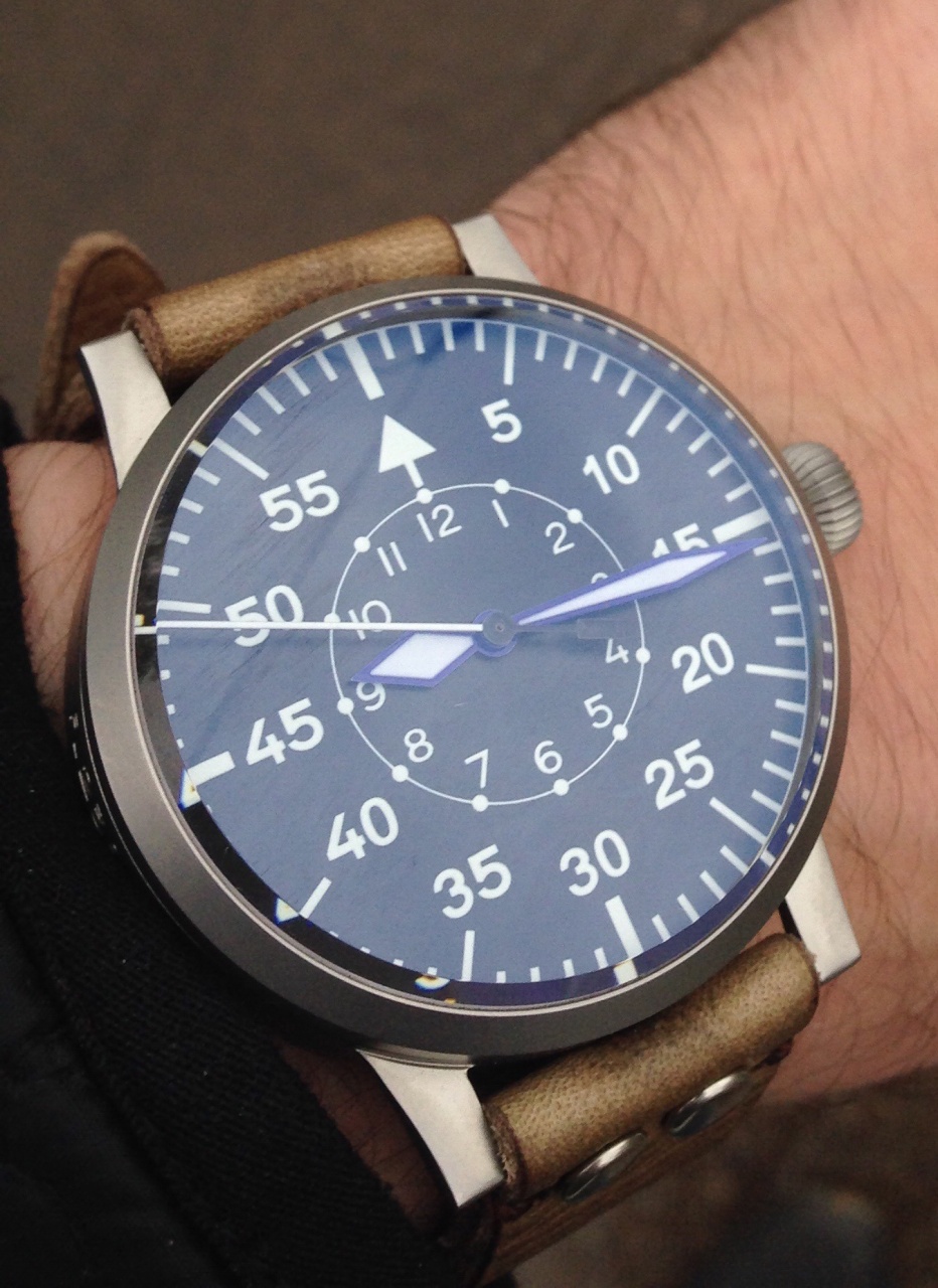 Quantity : Limited 100 pieces only Material : Sandblasted 316L Stainless Steel Movement : Miyota Automatic 8215 Dimension : Case diameter 47 mm, Lug to Lug 54.75mm, Thickness 17mm Lug size : 22mm Crown size : 8.20mm Water Resistant : 5ATM (50 meters) Glass : Sapphire Glass, with AR Coating Dial : Type B Pilot dial, Off white color w/ Superluminova Hands : H/M - Blue coated, S - Black coated - w/ Superluminova Strap : Vintage leather strap with Roller Buckle Packaging : Vintage leather Watch travelcase Отличные часы - если не брать в расчет прыгающую секундную стрелку.. хотя правильнее бы было сказать - падающую.. Если держать часы в вертикальной плоскости то начиная с 7 ой секунды она буквально пикирует вниз как истребитель с периодичностью замирая преодолевая за раз сразу две три секунды и лишь начиная с 26 секунды начинает относительно плавно идти вверх) но как пишут это особенность мех-ма miyota8215 и ни как не влияет на точность хода. Меня это не напрягает - просто после Eta2824 немного удивило. Вложение 790104 Вложение 790105Вложение 790106Вложение 790107Вложение 790108Вложение 790109 |