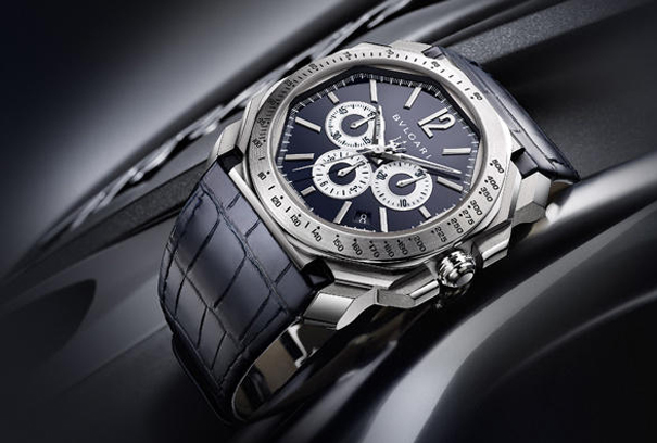 2014 год для Maserati пройдет под знаком празднования 100-летнего юбилея компании, которая была основана 1 декабря 1914 года братьями Альфиери, Эторе и Эрнесто Мазерати. Этот год ознаменован еще одним юбилеем: компания Bvlgari празднует свое 130-летие. В честь двойного праздника известные итальянские марки решили объединить свои усилия и создали спортивную модель с неординарным характером. Хронограф Octo Maserati – это симбиоз двух потрясающих талантов в таких разных и таких близких друг другу областях. Maserati – икона итальянского автомобилестроения и современного дизайна построила свою историю успеха на противостоянии, в центре которого всегда были люди. Инженеры, дизайнеры, механики – все, кто имеет отношение к созданию гоночного болида, и, конечно же, пилот, ведь судьба автомобиля находится в его руках. Такой подход позволяет компании предлагать требовательным и утонченным клиентам автомобили класса Grand Tourisme, которые принципиально отличаются от обычных спортивных автомобилей. Быстрые и удобные автомобили « GT » увлекают своих пассажиров в комфортное путешествие на большой скорости. Так, Maserati ставит мощь и совершенство итальянских автомобилей на службу человеку, ведущему активный образ жизни. Будучи приверженцем той же философии, компания Bvlgari, специально к юбилею итальянского автомобильного конструктора, разработала дерзкий и креативный хранитель времени, который буквально пропитан искусством жизни по-итальянски или как его принято называть dolce vita. На смену выпущенному два года назад хронографу Octo Quadri-Rétro Chronograph, пришел еще один хронограф, выдержанный в цветах Maserati. Новинка оснащена механизмом, достойным своего прототипа. Механизм, получивший название Velocissimo, что в переводе с итальянского означает «самый быстрый», представляет собой автоматический хронограф с частотой колебаний 36 600 пк/час, собранный на 45 камнях. Оснащенный кремниевой спиралью баланса и качающимся трибом, механизм обеспечивает быстрый и четкий запуск хронографа, сравнимый с принципом действия коробки передач. В основе механизма – калибр BVL 328, снабженный 50-часовым запасом хода. Мощная механика, готовая как к мгновенным победам, так и к забегам на длинные дистанции, подобно автомобилям, которые предлагает Maserati. Флер dolce vita исходит не только от безупречной механики, но и от оригинального дизайна корпуса с великолепной отделкой. Ведь при создании модели речь шла не просто о партнерстве: это был живой диалог между инженерами и дизайнерами двух итальянских домов. Массивный удобно читаемый корпус Octo Maserati, выполненный из нержавеющей стали, сохраняет водонепроницаемость на глубине до 100 метров и напоминает о винтажных и современных моделях Maserati, неизменным преимуществом которых был и остается потрясающий комфорт. Читать циферблат Octo Maserati, выполненный в технике выемчатой эмали, так же легко и удобно, как и автомобильные счетчики. Сама техника представляет собой долгий и трудоемкий процесс, состоящий из множества этапов, начиная от вырезания выемок, которые в процессе обжига заполняются лаком, заканчивая финишной отделкой поверхности, нанесением лака вручную и тщательной полировкой каждой детали. В конечном счете получается элегантный и легко читаемый циферблат, вобравший в себя преимущества приборной панели автомобиля с трезубцем на радиаторной решетке. Темно синий 