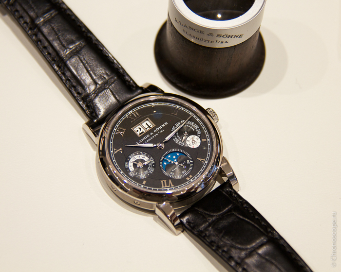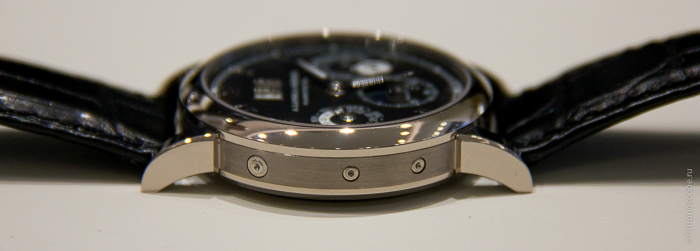 Да и коллекционеры ждали. Ведь только в таком формате поклонники «ланге» могут увидеть всю коллекцию марки в одном месте и только такой формат предполагает появление в России специальных и редких моделей, которые нашими людьми ценятся особо. Представитель A. Lange & Söhne Люка Донди (он курирует Россию), лично приехавший на открытие магазина, продемонстрировал одну из таких редкостей — часы Langematik Perpetual с черным циферблатом, предназначенные только для продажи в московском бутике. Их особенность состоит в том, что это первые Langematik Perpetual с черным циферблатом и в корпусе из белого золота. Часы хороши. У них отличный дизайн, полезный функционал и комфортный размер. В отделке корпуса (его диаметр составляет 38,5 мм) использовалась полировка и матирование. До зеркального блеска отполированы безель и дужки, а боковая часть, на которой разместились все элементы управления, сделана матовой, так что если рука нечаянно соскочит, царапина не будет очень заметной. Но, надеемся, что не соскочит. Вечный календарь включает в себя большой индикатор даты, а также стрелочные указатели дня недели и месяца. Механика сама высчитывает високосные годы (соответствующий индикатор тоже иммеется) и при верной установке календарный механизм, не нужно корректировать в течение 100 лет. Помимо этого в часах есть указатель фаз Луны, совмещенный с малой секундной стрелкой и индикатор времени в 24-часовом формате. Все календарные счетчики управляются при помощи крошечных кнопок, утопленных в корпус. Их настройку можно проводить одновременно, с помощью главного корректора, или по отдельности. В часах установлен автоматический механизм Sax-0-Mat с функцией Zero-Reset: при вытаскивании заводной головки для перевода стрелок, секундная стрелка часов моментально перескакивает на «ноль». Это позволяет точнее синхронизироваться с сигналом точного времени. Ротор автоподзавода выполнен из золота, к нему также прикреплён платиновый обод. Завод осуществляется в обе стороны, а запас хода составляет 46 часов. Увидеть механизм можно через прозрачное заднее стекло. Точная цена в рублях пока не афишируется, но сотрудники бутика говорят о сумме около 4 млн. Вложение 803686Вложение 803687Вложение 803688 Вложение 803689 Источник: http://chronoscope.ru/2014/09/a-lang...utique-moscow/ |