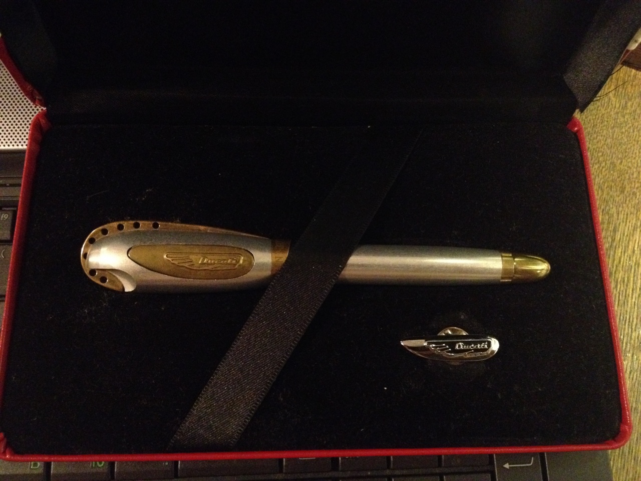 Данный экземпляр перьевой, №305, что подтверждено гравировкой и сертификатом. Комплект полный за исключением значка Ducati, который, к сожалению, утерян.(отверстие для него в коробке в левом нижнем углу на фото) Естественно не использовалась. Абсолютно новая. Цена 8900 руб Шлифованный алюминий и, скорее всего, бронза или латунь. Хороший недорогой подарок поклоннику марки, а также коллекционеру. на Ибее единственное предложение по словам поиска: DUCATI LIMITED EDITION SPORT CLASSIC SILVER почему-то там пишут, что позолота, но, думаю, вряд ли. там полный комплект со значком ~13500 руб на 06.10.2014 Фото мои. http://84.img.avito.st/640x480/1108931784.jpg http://29.img.avito.st/640x480/1108931729.jpg http://86.img.avito.st/640x480/1108931686.jpg http://33.img.avito.st/640x480/1108931633.jpg http://50.img.avito.st/640x480/1108929250.jpg |