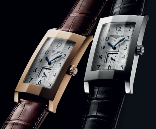 Jaeger LeCoultre продолжает свою традицию сотрудничества с Dunhill, что выразилось в новых часах Dunhill Facet. Тонкие, элегантные и прямоугольные, своим дизайном в виде граненого кристалла, они подчеркивают стиль эпохи ар-деко. Изначально разработанные в 1936 году и в настоящее время обновленные, эти часы, в стальном или золотом 50-миллиметровом корпусе, оснащены механизмом Jaeger LeCoultre 822 с указателями часов, минут и секунд на боковом квадратном циферблате на 6 часах.