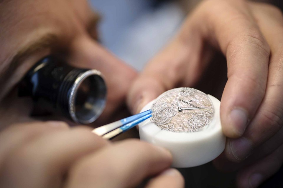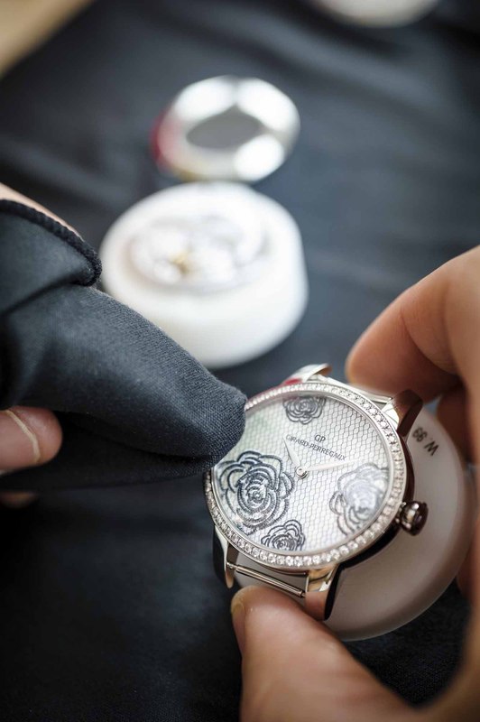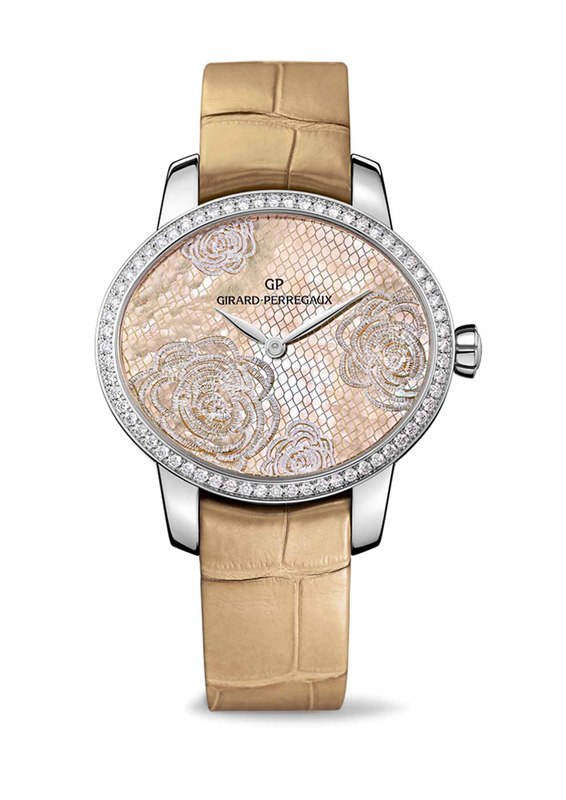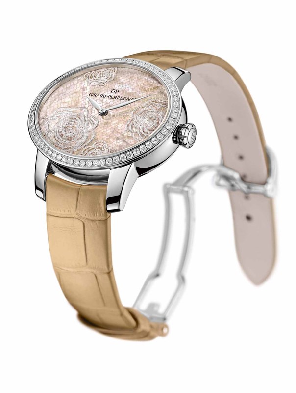 Женская модель Cat’s Eye с узнаваемым овальным корпусом появилась в палитре Girard-Perregaux 10 лет назад, в 2004-м. И сразу же была по заслугам оценена индустрией, удостоившись приза Grand Prix d’Horlogerie de Genève в номинации «Лучшие женские часы». Затем модель несколько раз усовершенствовалась как с технической, так и с дизайнерской стороны. Сегодня же, в честь своего 10-летнего юбилея, она вновь заслуживает повышенное к себе внимание – новая Cat’s Eye Bloom украшена букетом нежных пионов, выполненных в особой технике.