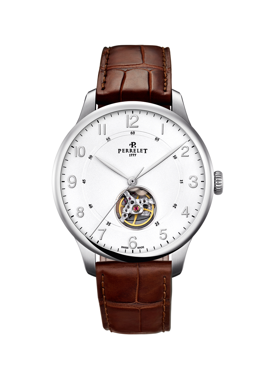 Швейцарская часовая компания Perrelet представила свою новую модель First Class Open Heart, которая выпущена в двух версиях: мужской (с корпусом диаметром 42,5 мм, толщиной 10,7 мм, с циферблатами белого, черного или антрацитового цвета, с накладными арабскими цифрами или с накладными часовыми индексами) и женской (с корпусом диаметром 35,0 мм, толщиной 10,0 мм, с циферблатами белого или черного цвета, с накладными арабскими цифрами).