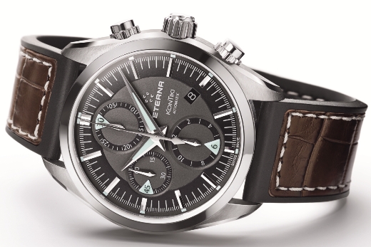 Швейцарская часовая компания ETERNA представила свою новую модель Kontiki Chronograph, которая выпущена в трех вариантах: в нержавеющей стали на стальном браслете (Réf. 1241.41.41.0217), в нержавеющей стали на кожаном ремешке (Réf. 1241.41.41.1307) и в нержавеющей стали с черным PVD-покрытием на кожаном ремешке (Réf. 1241.43.41.1306).