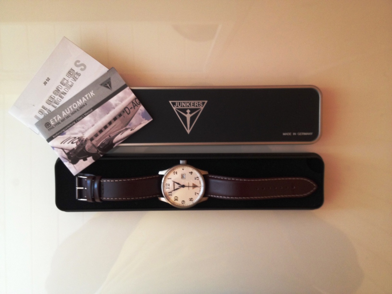Пол: мужские Год покупки: 2013 БУ часы, состояние: AAA (идеальное) http://forum.watch.ru/images/market-question.png Полировка: нет Цена: 470 USD (продажа) Коробка: есть Документы: есть Продаются немецкие мужские часы Junkers Iron Annie Ju 52 6656-1S. Приобретены в Германии в 2013 году. Надевал три раза. состояние идеальное. Коробка, инструкция. Производитель: POINT tec Electronic GmbH Тип: механические, мужские Способ отображения времени: аналоговый (стрелки), формат 12 часа Механизм: ETA 2824-2, Automatic, swiss made Функции: секунды, минуты, часы, дата Корпус: нержавеющая сталь, прозрачная задняя крышка, рельефный циферблат Стекло: сапфир Водозащита: 5 ATM Тип браслета/ремешка: нат. кожа Габариты: 42x15 мм Масса:100 гр. Цена вопроса: 470USD включая пересылку по России. Вложение 824466 Вложение 824467 Вложение 824468 |