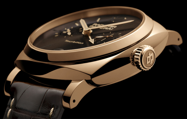 Мануфактура Panerai известна своими массивными и уже ставшими культовыми часами. Каждые из часов созданы во всех традициях легендарных моделей 1940 и 1950-х годов. Основным отличием этих моделей от официальных версий является материал корпусов и часовых механизмов. Некоторые из них имеют калибры ETA 6497, но большинство используют производственные. А некоторые славятся превосходными производственными часовыми механизмами. С часами Radiomir 1940 Tourbillon GMT Oro Rosso PAM558 компания Panerai планирует «повышать ставки» в области часового искусства – по крайней мере, для самого механизма – и приписывает часам с Калибром P2005 значение нового ограниченного издания. Ранее Калибр появлялся в модели Luminor 1950 Tourbillon GMT Ceramica. В его состав входит необычный 30-секундный турбийон, который вращается перпендикулярно балансирному механизму, когда классический турбийон делает эти вращения вокруг своей оси и (обычно) в течение одной минуты. Калибр сделан в стиле ¾ от Panerai (при том, что состоит из 3 разделенных мостов), с зернением, которое покрывает 3 барабана. Механизм обладает 6-дневным запасом хода, индикатор которого указан со стороны часового механизма стрелкой. Все это, конечно, видно сквозь сапфировое стекло задней крышки корпуса, что позволит рассмотреть фаски мостов и круговое зернение основной палеты. Лицевая часть имеет также некоторые интересные особенности: стрелка GMT на центральной оси, индикатор второго часового пояса в положении 3 часов (с указанием AM / PM) и индикатором секунд в позиции 9 часов. Стрелку GMT можно регулировать с шагом в один час непосредственно завинчивающейся головкой, не нарушая хода секунд или минут. Циферблат представляет собой культовую для Panerai трехслойную структуру. Модель Panerai Radiomir 1940 Tourbillon GMT Oro Rosso PAM558 имеет приятную зернистую фронтальную часть, с коричневой матированной сверкающей отделкой. Что касается корпуса, то коллекционеры не разочаруются, поскольку эта модель представляет классическую форму Radiomir 1940 – большие ушки (не проволочный ремешок-петлю классических Radiomir) и корпус без защиты заводной головки как в коллекции Luminor. Это переходная форма между двумя культовыми моделями бренда, старыми часами Radiomir и более современными Luminor 1950 года. Часы сделаны из красного золота 18к (Oro Rosso в номенклатуре Panerai) и имеют довольно внушительный диаметр 48 мм. Весьма не навязчивая комбинация. Тем не менее, сочетание коричневого циферблата и ремешка с этим золотым корпусом является весьма элегантным и уютным. Часы Panerai Radiomir 1940 Tourbillon GMT Oro Rosso PAM558 будут выпускаться ограниченным тиражом всего лишь в 3 единицы по неопределенной еще цене. Технические характеристики Часовой механизм: ручной завод, мануфактурный Калибр Panerai P.2005, 16¼ линии, толщина 9.1 мм, 31 камень, балансирный механизм Glucydur®, частота 28 800 пк/час. Противоударная система KIF Parechoc®. Запас хода 6 дней, три барабана. 239 компонентов. Функции: индикация часов, минут и секунд, времени второго часового пояса, счетчик 24, индикатор запаса хода с задней части корпуса, турбийон. Ремешок: мануфактурный ремешок Panerai из кожи аллигатора и полированная регулируемая застежка из красного золота 18к. Корпус: диаметр 48 мм, полированное красное золото 18к. Завинчивающаяся заводная головка индивидуального производства OP. Безель: полированное красное золото 18к. Задняя часть: прозрачное сапфировое стекло. Циферблат: коричневый 