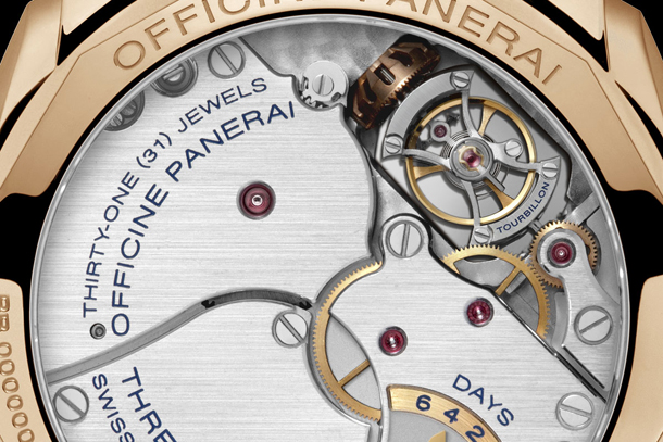 На выставке Watch And Wonders 2014 компания Panerai представила нечто невиданное, более усложненное и более эксклюзивное; то, о чем некоторые из нас мечтают уже давно: часы Radiomir 1940, оснащенные часовым механизмом P2005 – турбийоном с индикацией времени второго часового пояса и запасом хода 6 дней - Panerai Radiomir 1940 Tourbillon GMT Oro Rosso PAM558.
