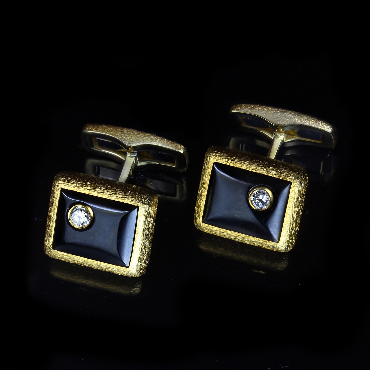 ~~~Запонки Piaget из желтого золота с бриллиантами 0,24 карат и ониксами~~~