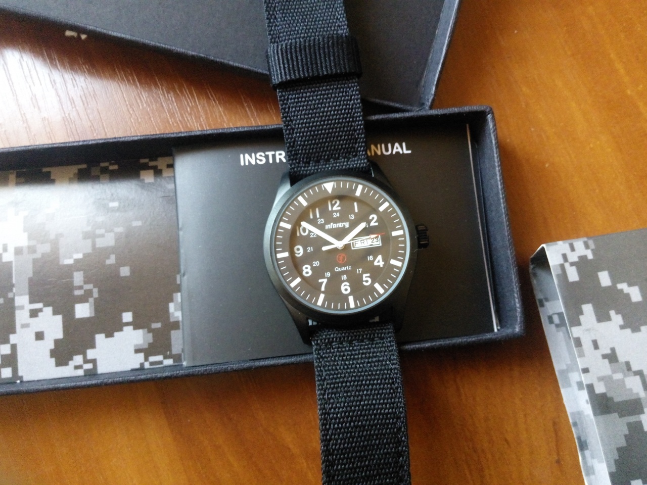 Часы обошлись в 800 р с пересылом, выполнены в стиле милитари, ремень нейлоновый, качественный с матовой стальной застежкой, корпус реально стальной , крышка хлопушка, с впадинами под ключ, объявленная водозащита 3 атм. Вложение 827277 Стекло минералка, на стрелках и цифрах тонкая суперлюминова , свечение которой не особо долгое, как примерно на дешевых касио в пластике. Точность хода не проверял, сегодня первый день. Двойной календарь с указанием дня недели на 2 языках и числа в арабских цифрах. Вложение 827278 На руке сидят хорошо , ремень нейлоновый , мягкий., на дырки нашит кусочек кожзама, что увеличит пробег ремня, отверстия под палку пряжки достаточно большие. Вложение 827279 Читаемость циферблата хорошая, накатка на головке цепкая. Стрелки переводятся слишком легко, что немного не айс, т.к либо отсутствует уплотнение , либо мех так построен, однако и производитель не обещает высокой водозащиты. Внутрь не лазил, т.к ничего незнакомого там увидеть не планирую. Для чего все же эти часы? Думаю , для неэкстремальной повседневки под одежду в стиле милитари. Смотрятся отлично, выглядят дороже чем стоят. Думаю, что продубасы на мотике или велике без заездов в радикальные говны им по плечу, как в прочем и другие действа без чрезмерного эктрима. Вложение 827280 |