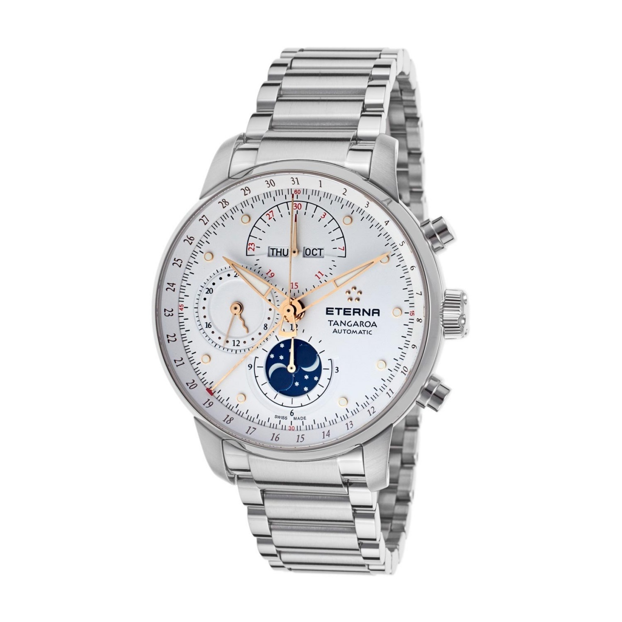 Eterna Tangaroa Automatic Chrono, белое лицо, браслет, золотые стрелки