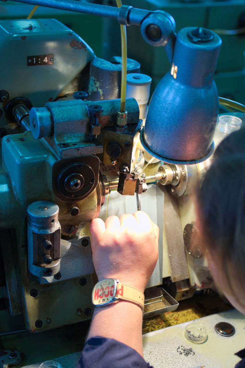 Зато все фотографии кликабельны. Наконец-то добрался до форума. Три месяца собирался написать отчет о посещении ПЧЗ, и вот... Отпуск в этом году решили провести в городе-музее Санкт-Петербурге. Раньше там ни разу не был, поэтому, так сказать, восполнил пробел в образовании. Естественно, что поездка в Питер не обошлась без посещения Петергофа. И естественно, я, как человек просветленный, не мог пропустить Петродворцовый часовой завод. Вложение 838570 Заранее выяснив, что при заводе есть часовой музей, расписание его работы и месторасположение, отправился я в Петергоф. Интересное началось от автобусной остановки. На поиски хоть чего-то, связанного с часами, помимо часов на проходной, ушло что-то около получаса, хотя была и карта с сайта завода, и 2ГИС в телефоне. Вот так выглядит карта на сайте завода: Вложение 838591 А вот так выглядит путь в действительности: Вложение 838592 По дороге оценил, так сказать, масштабы трагедии. От огромной некогда территории завода нынешнее производство занимает ничтожный клочок среди всевозможных офисов, гаражей и стоянок. Довольно уныло все это выглядит. В общем, нашли вход в какое-то обшарпанное здание с надписью "Часовой завод Ракета", там поднялись на второй этаж по не менее обшарпанной лестнице. Там подергали все завпертые двери поочередно, пока, наконец, не появилась девушка, которая на наш вопрос о музее сказала "Сейчас-сейчас" и у бежала за ключами. Во взгляде девушки читалось "Как вы сюда попали?". Надо сказать, что у меня была мысль заранее позвонить и все разузнать, но получилось как всегда - наобум. Девушка оказалась по совместительству гидом. Открыла нам "музей", который оказался небольшой обшарпанной комнатенкой с витринами. В витринах были выставлены предметы истории завода и, конечно же, различные модели часов: карманнные, наручные, каретные. Коллекция небольшая. Больше всего понравилась подборка "телевизоров". Прям себе б забрал. Там же стоят витрины с современными поделками завода. Вот честно, не понимаю я этого. Более-менее адекватный дизайн только у "пилотов" и "Амфибии". Но при этом цены... "Амфибия" еще не вышла, но ценник предварительный нам на нее назвали - в районе 60 тыр. Да кому ж она за столько денег... Что касается "пилотов", то, хоть они и стоят относительно недорого, но при этом тактильных ощущений дают меньше, чем "Ориент ***". Вложение 838671 Вложение 838672 Пока мы осматривали витрины, девушка-гид рассказывала нам что-то из истории завода. Слушал ее вполуха, т.к., в общем-то, все уже знал. А вот по окончании осмотра "музея", когда мы уже собрались было уходить, она внезапно предложила нам осмотреть производство. Такое предложение было более чем удивительно, ведь нас было всего двое, а, как написано на сайте "Ракеты", экскурсии на производство проводятся только по предварительной записи. Естественно, мы согласились. Сразу скажу, что поход в цеха изменил не только мое представление о современной "Ракете", но и отношение к механике как таковой. Я часовом производстве не очень разбираюсь, поэтому ограничусь визуальным описанием. Основной цех один, в нем расположены станки по производству частей механизма - платин, мостов, зубчатых колес и т.д. Цех не очень большой. Сперва идет участок по производству платин и мостов: Вложение 838606 Вложение 838607 Вложение 838608 Вложение 838609 Вложение 838610 Вложение 838611 Вложение 838612 Вложение 