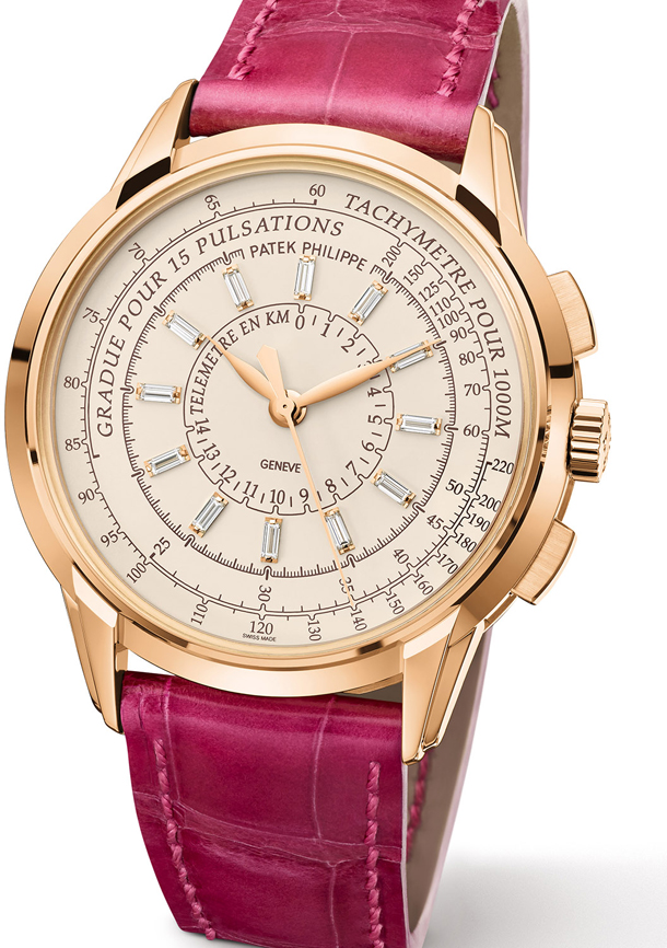 Часы Patek Philippe Multi-Scale Chronograph 5975 имеют весьма специфическую структуру трёх шкального часового «компьютера», не виданную в течение многих десятилетий. В настоящее время, в большинстве хронографов присутствует шкала тахометра (которая в основном используется в качестве декора). И до 60-70х годов не удивительно было видеть хронографы с различными функциональными шкалами, особенно в сериях не для военных подразделений. Patek же вновь воплотили в жизнь такого рода циферблат в модели 5975, поставляемой со стандартным функциональным набором: дальномер, пульсомер и тахометр. Вложение 847968Вложение 847969Вложение 847970Вложение 847971 • Дальномер имеет шкалу с делениями в километрах, используется для вычисления расстояния от какого-либо события. Используя разницу между скоростью света и скоростью звука, он позволяет узнать после получения звукового сигнала, насколько далеко окажется визуальный сигнал. В наши дни дальномер полезный, чтобы определить насколько далеко гроза, но во время войны основной задачей прибора было вычисление расстояния от взрыва. Вложение 847972Вложение 847973Вложение 847974 • Пульсомер используется учеными для измерения частоты сердечных сокращений. Модель Multi-Scale Chronograph Ref. 5975 имеет пульсомер, откалиброванный на 15 ударов сердца, что позволяет быстро определить частоту ударов сердца за минуту. Вложение 847975Вложение 847976 • Тахометр - наиболее широко используемый в хронографах прибор, даже в наши дни. Он используется для расчета скорости по известному расстоянию – например, для данной модели расстояние может составить более 1000 м (шкала Base 1000). Вложение 847977Вложение 847978 Всё это создает часам не только впечатляющий внешний вид, но и пробуждает ощущение истории и винтажных часов, достойные аплодисментов коллекционеров. Тем не менее, в них есть что-то довольно интригующее: отсутствие шаблонов. Как правило, такие многошкаловые хронографы делаются на основе установленых би-комплексных макетов – например, индикатор секунд в положении 9 часов и 30-минутный счетчик возле 3 часов. Модель Patek Philippe Multi-Scale Chronograph Ref. 5975 совершенно не имеет установленных рамок. Вместо этого она выглядит как классические 3-стрелочные часы, причем индикаторы часов, минут и секунд находятся на центральной оси. Тем не менее, секундная стрелка не работает произвольно, так как её можно остановить и регулировать по своему усмотрению, как 60-секундный хронограф. Либо же её можно использовать в качестве классической секундной стрелки, оставив без внешнего контроля. Вложение 847979 Часы Patek Philippe Multi-Scale Chronograph Ref. 5975 не имеют классического великолепного Калибра с ручным заводом CH29-535 (как в модели 5270 Perpetual Calendar Chronograph). Вместо этого, в них запечатлен современный и более практичный часовой механизм. Он нисколько не уступает приведенному примеру, в нем просто спрятаны шестерни и мосты, которые видно в CH29-535. Во всяком случае, Patek решили использовать автоматический, не менее точный механизм, полностью спрятанный в корпусе. Вложение 847980 Как уже было сказано, внутри модели 5975 установлен мануфактурный Калибр CH28-520. Данный механизм уже использовался ранее в хронографах Nautilus 5980, и в модели Travel Time Ref. 5990, представленной в этом году на выставке Baselworld. Так что же представляет собой калибр CH28-520? Вложение 847981 Это механизм с автоматическим заводом, обеспечивающий 50 часов запаса хода благодаря цельному