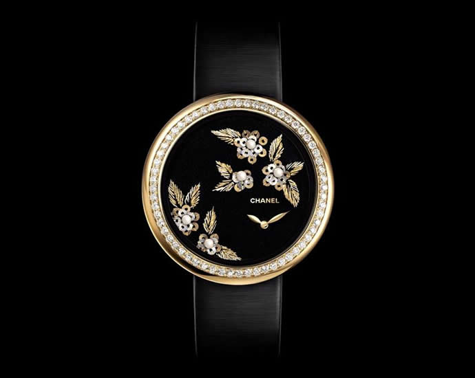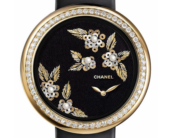 Французский бренд Chanel в сотрудничестве с La Maison Lesage создал две новых версии изящных женских часов Mademoiselle Prive Camelia. В течение почти ста лет La Maison Lesage выпускает изящные вышитые украшения для самых известных модных лейблов, но она прежде никогда не использовала свое ноу-хау для циферблатов часов. Особую уникальность модели придает то, что вышивка сделана с использованием жемчуга и миниатюрных бриллиантов.