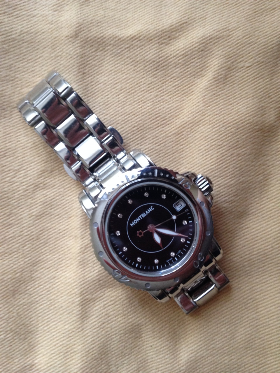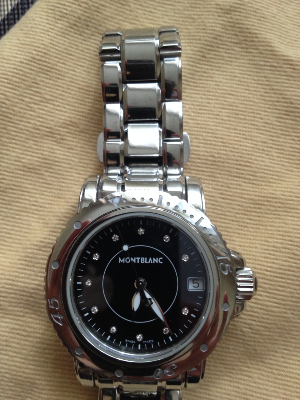 Пол: женские Год покупки: 2012 Новые часы, состояние: N- (новые) http://forum.watch.ru/images/market-question.png Цена: 50 000 руб. (продажа) Коробка: есть Документы: есть Спортивные часы в корпусе из легированной стали диаметром 34,5 мм, черный блестящий циферблат с 11 бриллиантами (около 0,033 карата), кварцевый механизм, индикатор даты, полированный браслет из легированной стали с тройной раскладывающейся застежкой, водонепроницаемость до 20 бар (200 м). Калибр: Montblanc 4810/101 Характеристики: Кварцевый, Индикатор окончания срока службы элемента питания Индикация: Часовая – минутная – секундная стрелки, индикатор даты Сложные функции: - Элемент питания: 395/1,5 В Частота колебаний баланса/Количество камней: 7 камней. Калибр: Montblanc 4810/101 Характеристики: Кварцевый, Индикатор окончания срока службы элемента питания Индикация: Часовая – минутная – секундная стрелки, индикатор даты Сложные функции: - Элемент питания: 395/1,5 В Частота колебаний баланса/Количество камней: 7 камней. Материал: Полированный браслет из легированной стали Застежка: Тройная раскладывающаяся застежка. страна производитель: Германия http://montblanc-ru.com/products/montblanc-102364 Вложение 853950Вложение 853951Вложение 853952 |