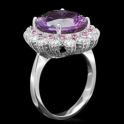 Металл кольца - белое золото 585 пробы Размер - 17 (меняется) Вес кольца - 7 г. Аметист - природный, вес 6,5 карат Рубины - природные, 14 шт., общий вес 0,2 карат, метод улучшения - нагрев Бриллианты - 14 шт., общий вес 1,3 карат, цвет 3-4, чистота 5. Характеристики указаны на основе сертификата BHGL (сертификат в электронном виде). Цена на это произведение ювелирного искусства $2300, обмен на часы. Подарочный бокс в комплекте. Все предложения и пожелания с удовольствием принимаются в личку. Возможна отправка в любой город РФ. Вложение 876185 Вложение 876186 Вложение 876187 Вложение 876188 |
