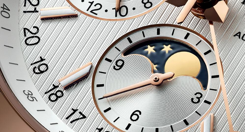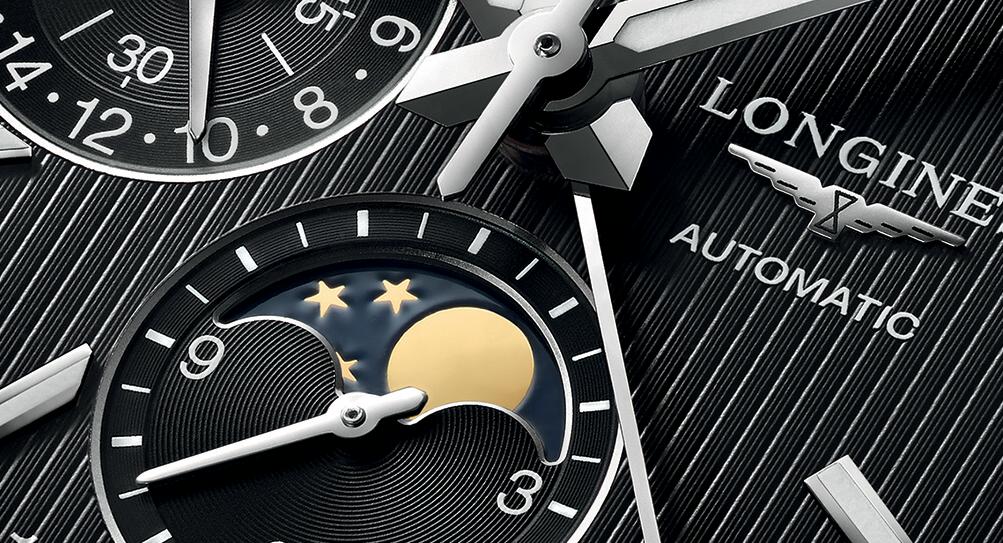 Модель оснащена швейцарским автоматическим механизмом Longines L678 (базовый калибр ETA Valjoux 7751), на 25 драгоценных камнях, с балансовой частотой 28800 полуколебаний в час (4 гц), 48-часовым запасом хода, с функциями индикации часов, минут (посредством соответствующих центральных стрелок), секунд (на малом боковом циферблате, расположенном на 9 часах), даты (посредством соответствующей центральной стрелки с наконечником, выполненным в форме полумесяца, на круглой шкале с 31-дневной разметкой, расположенной на периферии циферблата), дня недели и месяца (посредством соответствующих буквенных указателей в прямоугольных апертурах, расположенных на 11 и 13 часах), фаз Луны (посредством соответствующего указателя, расположенного на 6 часах), а также с 24-часовым циферблатом, расположенным на 9 часах, и с хронографом (центральная секундная стрелка, круглый аналоговый 30-минутный счетчик, расположенный на 12 часах и круглый аналоговый 12-часовый счетчик, расположенный на 6 часах).