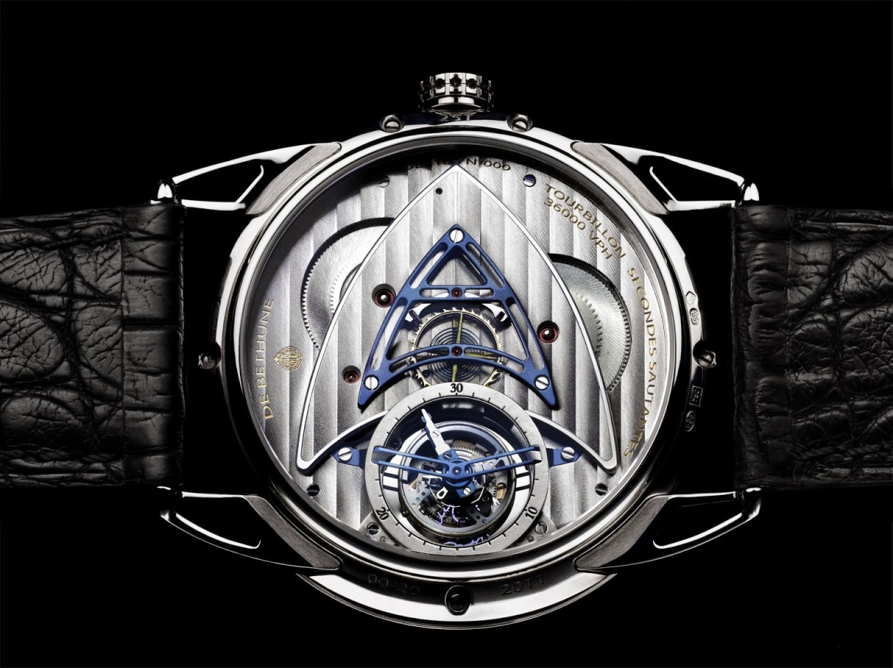Модель оснащена мануфактурным швейцарским механизмом с ручным заводом De Bethune DB2109, диаметром 30,0 мм, состоящим из 320 деталей, с двумя заводными барабанами, что обеспечивает запас хода в течение четырех суток, работает на 45 камнях, с балансовой частотой 36000 полуколебаний в час (5 гц), отменно отделанным и декорированным, с функциями индикации часов, минут, секунд (посредством соответствующих центральных стрелок), функционирования механизма (посредством соответствующего указателя в апертуре секторной формы, расположенной на 12 часах), а также с кремниево-титановым 30-секундным турбийоном, расположенном на задней стороне калибра и просматриваемого через прозрачную заднюю крышку часового корпуса. На его каретке установлена ретроградная секундная стрелка. Поставляется на темно-синем ремешке из кожи аллигатора с застежкой из 18-каратного белого золота. Лимитированный выпуск 20 экземпляров. Вложение 898006Вложение 898007 Источник: http://www.masterhorologer.com/2015/...urce=BP_recent |