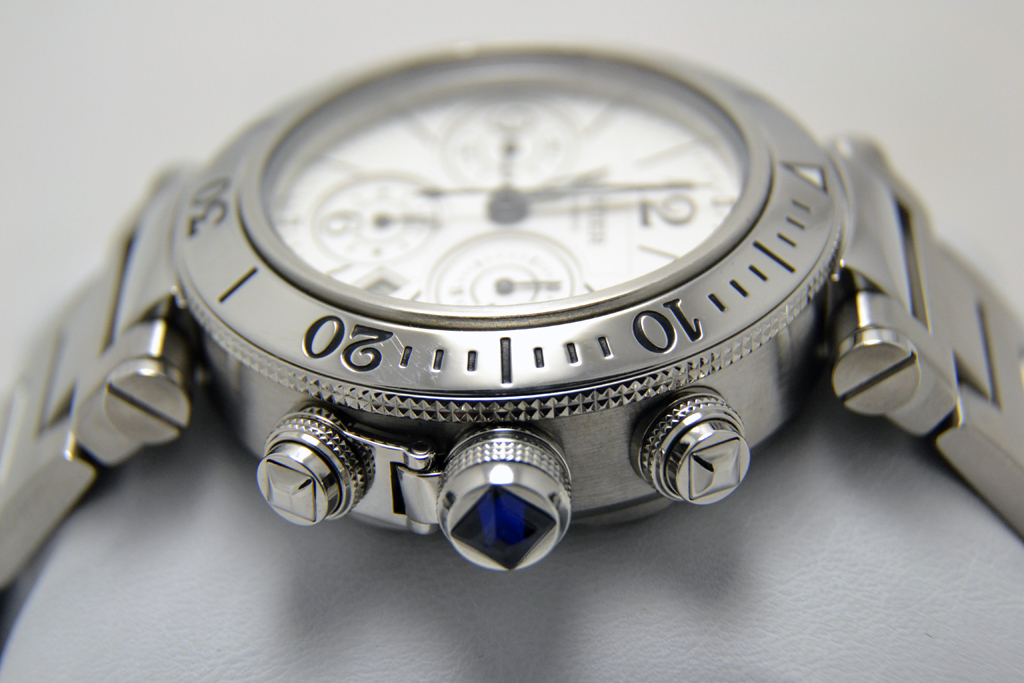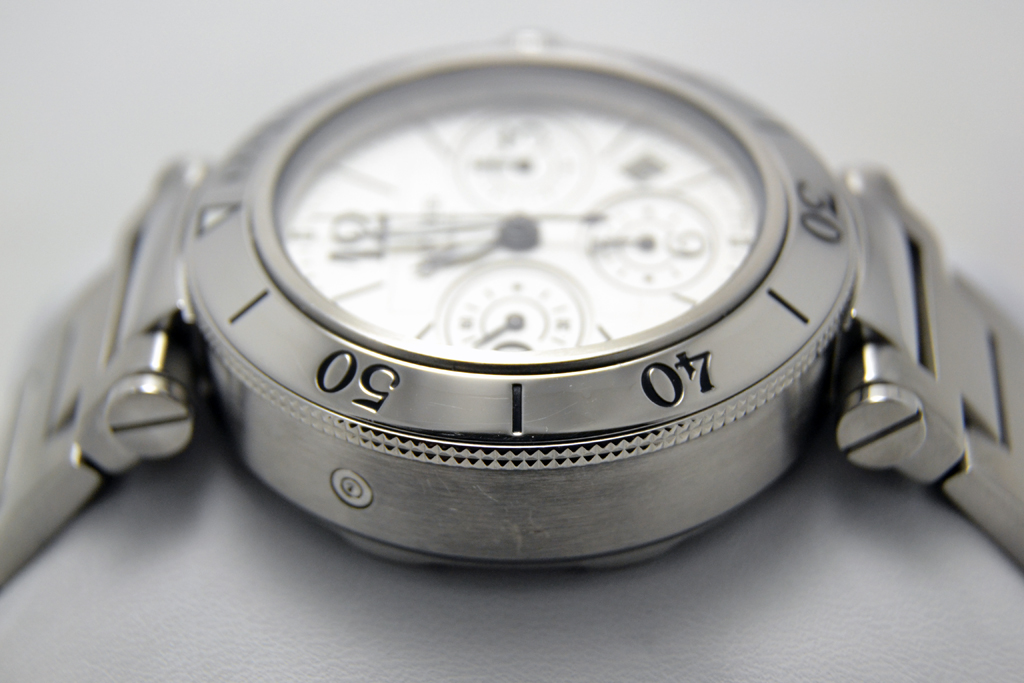 Cartier Pasha Seatimer Chronograph, сталь, браслет, белое лицо