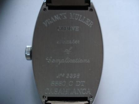 Продам FRANCK MULLER 8880 C DT CASABLANKA часы практически новые одевались раз 10 и то очень аккуратно, коробки и документы в наличии, в Москву и Питер доставка без проблем, это самый большой боченок из FRANCK MULLER размер 39mm X 47mm 55mm , толщина 17.5mm, в часах стоит платиновый ротар 950 пробы, ход часов идеальный:) цена 3500EUR.
