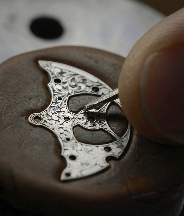 Два легендарных калибра Мануфактуры в драгоценных корпусах из платины декорированы в традиционной технике, отражающей стремление к сдержанному, лаконичному дизайну. Из завитков и арабесков складывается узор «лист аканта» — уникальный орнамент, используемый еще со времен античности в самых разных видах художественного творчества. Гравировка, которую применяют в часовом деле с момента зарождения этого ремесла, — сложное искусство, требующее большого опыта и мастерства. Гравер должен нанести узор на мельчайшие детали часов без какого-либо ущерба для их эстетического совершенства и функциональности. Благодаря искусно выполненному декорированию часы приобретают особую ценность, что подтверждает знаменитое Женевское клеймо. Коллекция Métiers d’Art от Vacheron Constantin, в которой недавно была представлена новая, необыкновенно изящная модель, ставшая выражением наиболее современных скульптурных тенденций в искусстве скелетонирования, теперь пополнилась элегантными часами, украшенными гравировкой в традициях Высокого часового искусства. Красота легендарных мануфактурных калибров 2260 и 4400 подчеркнута цветочными орнаментами, созданными по образцам старинных ювелирных украшений. Вложение 905515 Завитки и арабески, выполненные в духе самых изысканных декоративных техник, вручную нанесены на функциональные детали механизмов, чтобы подчеркнуть их техническое совершенство и неповторимую красоту. Лист аканта, украшающий эти часовые механизмы, воплощает в себе многовековые художественные традиции: этот элемент широко использовался еще в классической греческой архитектуре. Первые его образцы встречаются уже в V в. до н. э. на капителях коринфских колонн. Благодаря стилизованной форме, дающей бесконечную свободу интерпретации, лист аканта был невероятно популярен на протяжении всей истории западной цивилизации, его можно увидеть в огромном множестве творений, особенно эпохи Возрождения и барокко. Вложение 905516Вложение 905517 Этот изысканный растительный узор, пришедший из глубины веков и символизирующий победу и славу, нашел применение в самых разнообразных художественных техниках, включая гравировку, мозаику маркетри, вышивку и живопись. Характерные завитки можно увидеть и на многих механизмах карманных часов, составляющих основу наследия Vacheron Constantin. На калибрах Мануфактуры есть и другие изумительные орнаменты ручной работы: в XVIII в. это были растительные узоры, с середины XIX в. — узоры из завитков, в 1920-х гг. — херувимы и арабески, в 1940-х — узор mille feuilles («тысяча листьев»), а в 1980-х гг. — снова арабески. Вложение 905518 Отдавая дань уважения этой древней технике, применявшейся для декорирования часовых творений Мануфактуры, Vacheron Constantin представляет в коллекции Métiers d’Art две новые модели часов с калибрами, полностью гравированными вручную по принципам традиционных декоративных ремесел. Вложение 905523 Несмотря на необычайную гибкость акантового орнамента, дающего художникам практически безграничную свободу самовыражения, выполнение гравировки на функциональных деталях калибра часов из категории Высокое часовое искусство является крайне сложной задачей. За создание этого миниатюрного произведения искусства способен взяться только самый искусный гравер, поскольку нанесение рисунка на чрезвычайно тонкие детали требует огромной т