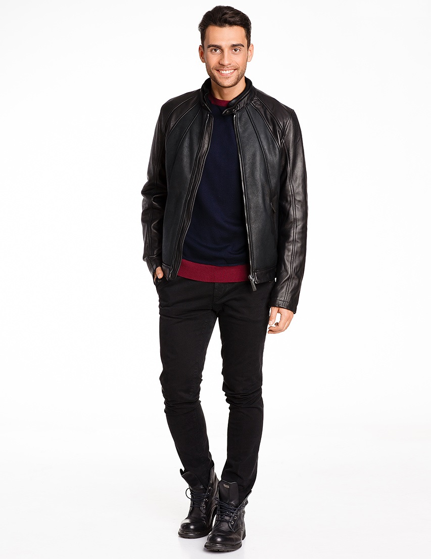 Продам мужскую куртку Just Cavalli полного 54 размера приталенного силуэта из мягкой кожи с фактурной поверхностью чёрного цвета. Модель утеплена толстым слоем овечьего меха. Детали: застёгивается на молнию; небольшой воротник-стойка застёгивается на кнопку; два кармана на молнии спереди; короткие молнии и ремешок на кнопке на рукавах. Заказывал в итальянском интернет-магазине, но к зиме набрал вес, и куртка стала немного мала.