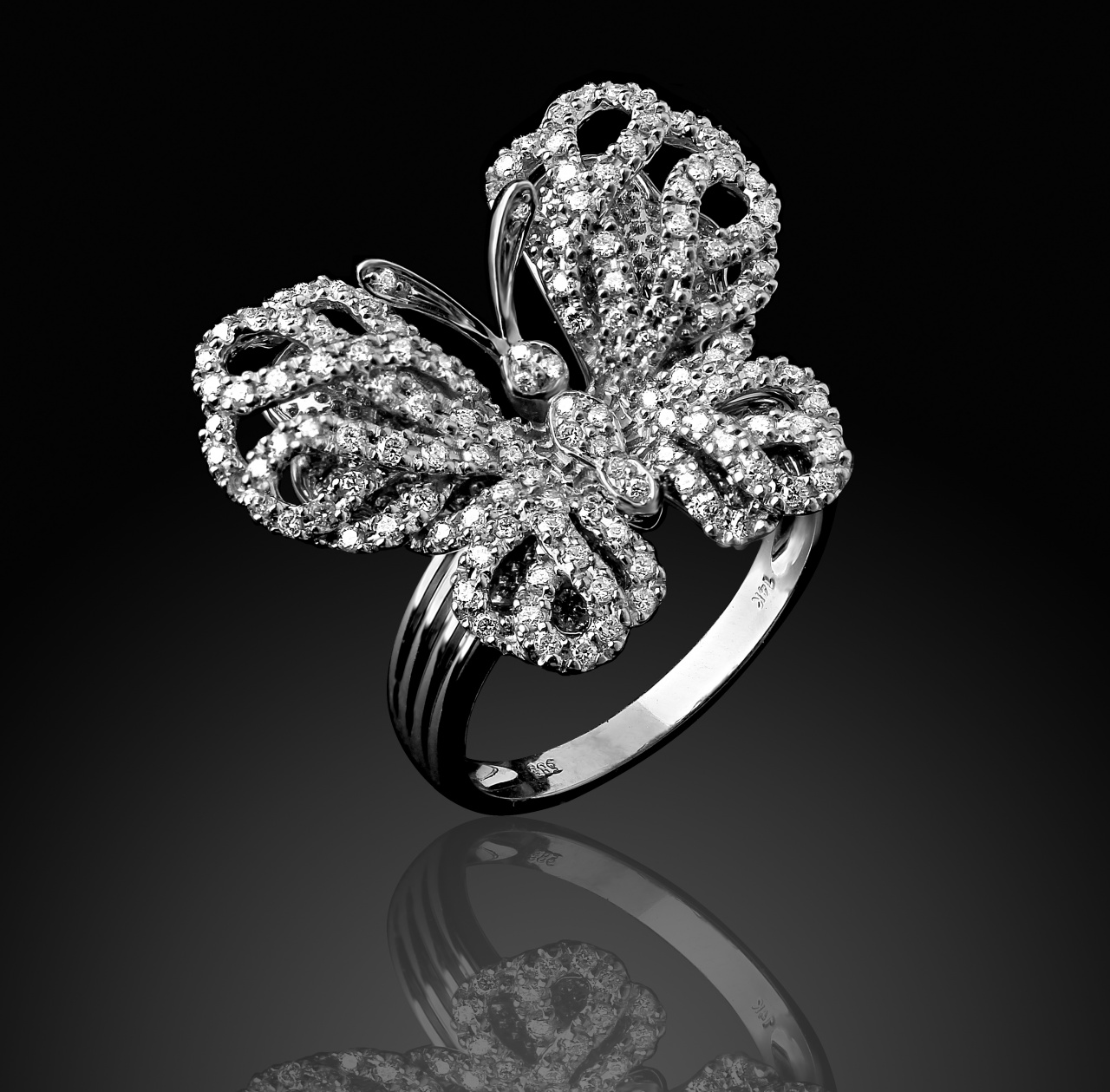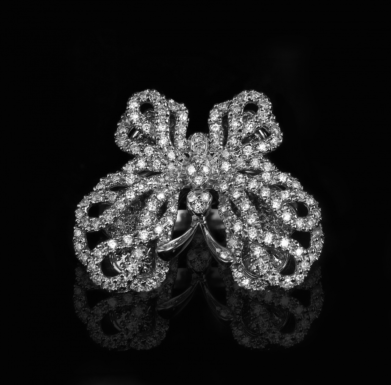 В продаже великолепное кольцо из белого золота с бриллиантами.
