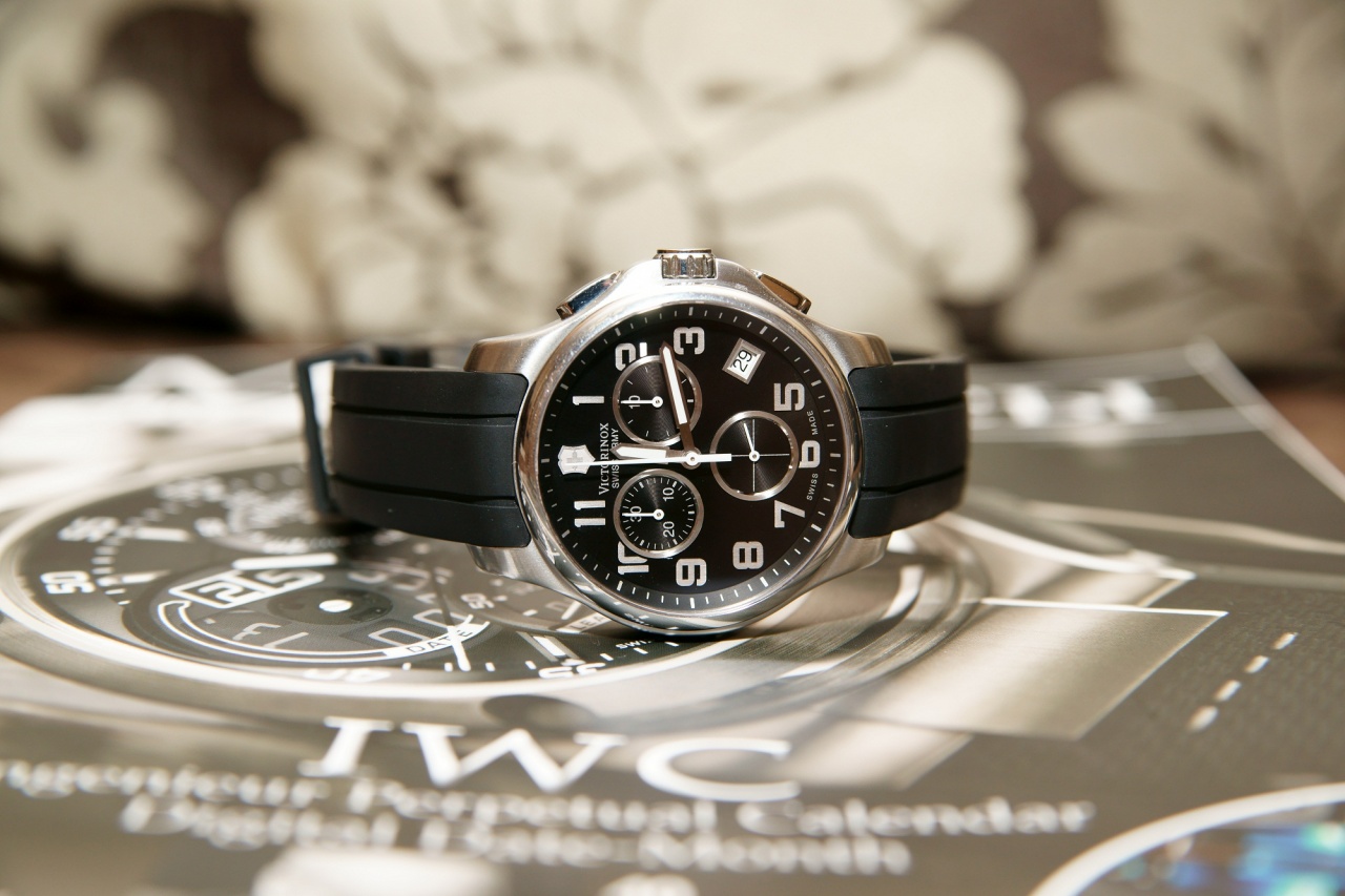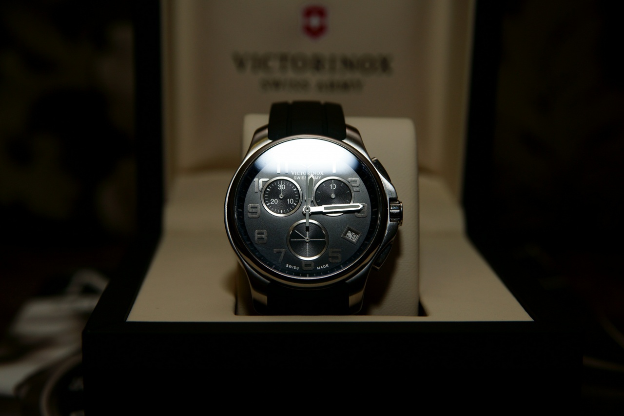 Свой Викторинокс я купил в результате довольно долгого выбора часов с функцией День-Дата. Не столько потому, что они показались самым лучшим выбором в этой нише, а просто очень уж понравились. Итак, Victorinox Officer's: http://hongik.smugmug.com/Art/Watche...SCF7181-XL.jpg http://hongik.smugmug.com/Art/Watche..._123500-XL.jpg Визуально-дизайнерское впечатление от часов просто превосходное! Они достаточно строги и в то же время совсем не скучны. Очень нравится оформление заводной головки, благодаря чему она меньше давит в руку и смотрится красиво. Очень хорошо сочетание сатинирования и полировки корпуса. Тактильно-носибельно часы тоже очень приятны. Марка не гонится за гигантоманией - диаметр моих часов 40 мм, при этом за счет небольших ушек они крупными не выглядят. Ремень совсем простой, но эта даже добавляет солидность часам. Относительно слабым местом модели явно является механизм. В моем экземпляре было расхождение минутной и часовой стрелок (заметно на первой фотографии), но в сервис-центре при мне за 15 минут это исправили. Секундная стрелка в метки, конечно, не попадает и вообще немного подрагивает при ходе, но это не особо отвлекает и не сильно портит хорошее впечатление от часов. Точность пока что примерно +0,5 секунды в сутки. Вообще у этой марки есть несколько весьма любопытных моделей (особенно та, где часы выглядят как обычные, а на самом деле имеют и функцию хронографа), так что если на форуме найдется приличное количество владельцев будет интересно посмотреть на эту марку. |