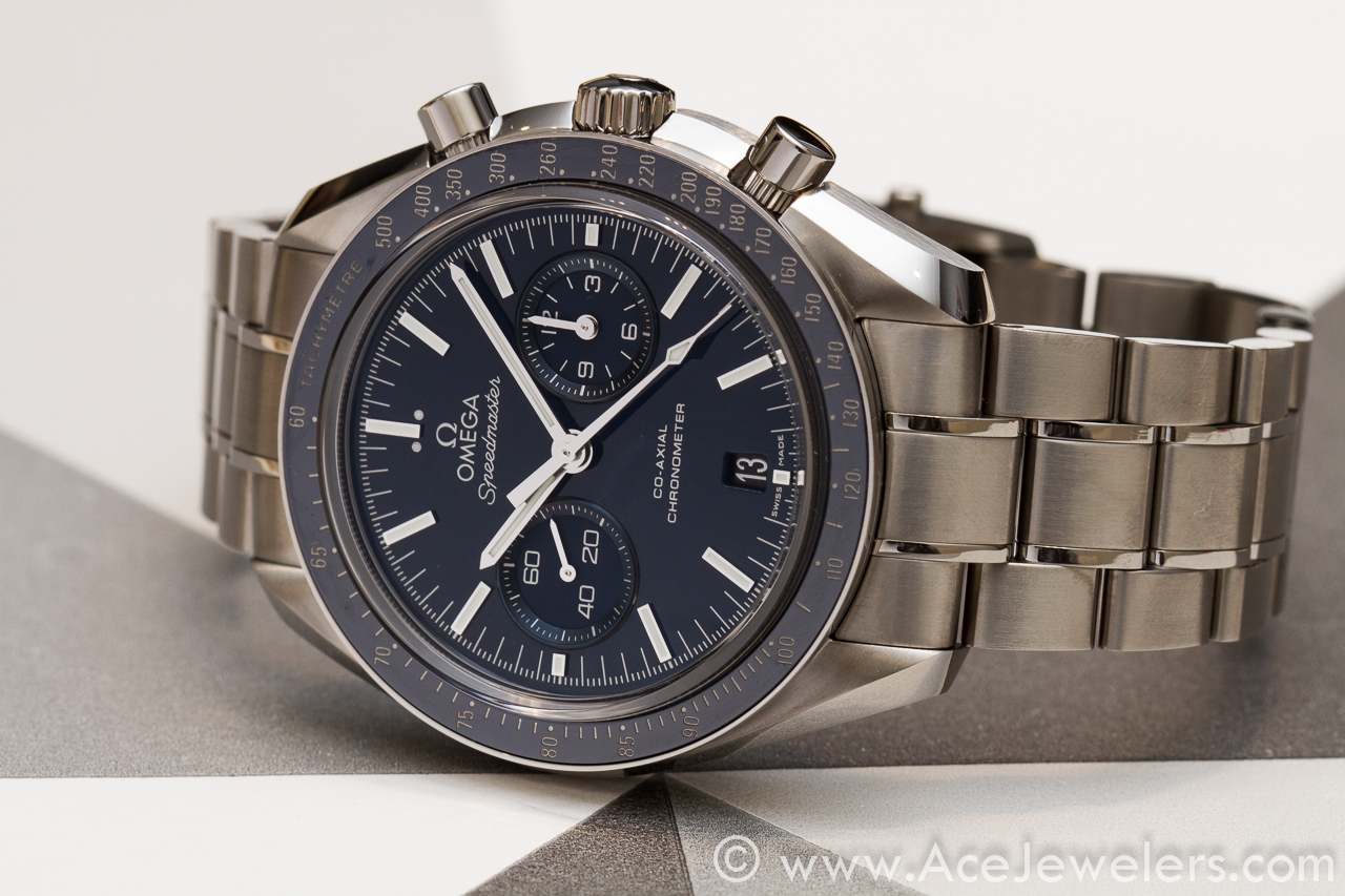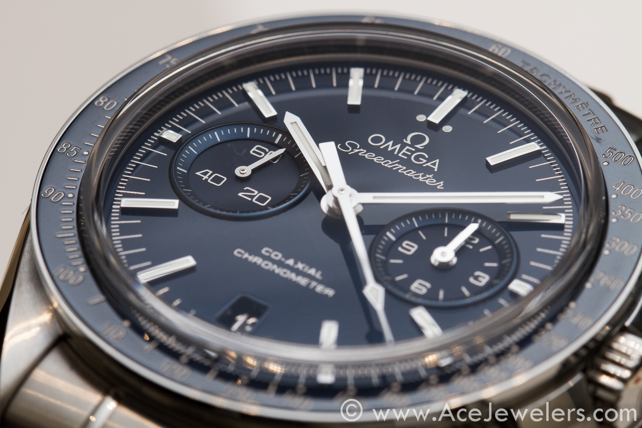 Для меня Омега началась со спидмастера, а именно с модели SPEEDMASTER DATE / DAY-DATE CHRONOGRAPH 40 ММ DAY-DATE (3220.50.00). Зацепила она меня именно усложнениями. Это потом были уже планеты и акватерры, но первая Омега была именно спиди. И вот спустя долгое время я прицелился на калибр 9300. Планета на этом калибре мне не нравилась и не подходила. Спидмастеры понравились разные. Но я не мог выбрать определенную модель. И долгое время ходил вокруг да около, мерил, сомневался, снова мерил, и снова сомневался. Наконец выбор сузился до 3-х вариантов (понравившиеся мне модели): 1. Speedmaster Professional Apollo 11 45th Anniversary Limited Edition (311.62.42.30.06.001) 2. Speedmaster '57 CO-AXIAL CHRONOGRAPH 41,5 ММ c синим лицом и на браслете (331.10.42.51.03.001). 3. Speedmaster MOONWATCH OMEGA CO-AXIAL CHRONOGRAPH 44,25 ММ с черным лицом, стальной (311.30.44.51.01.002) Были еще два Спиди, которые я смотрел. Это - Speedmaster «Dark Side of the Moon» (311.92.44.51.01.003) и - Speedmaster «Grey Side of the Moon» (311.93.44.51.99.001) Grey Side понравился больше, чем Dark Side… и цветом, и классным ремнем. Но мне очень хотелось, чтобы Спиди был на браслете. Модель 1 нравится необычным дизайном. Но не нравилось: - длинный «нато»-ремень, использование драгметаллов во внешнем оформлении (никогда не нравилось это в часах) и 5 атм (хотя чего уж там?! Не плавать же в них собрался); Модель 2 понравилась именно с синим цифером. Но не понравился браслет, который содержит полированные звенья (хоть и привыкать я уже стал к новым аквам, но у спиди хотел иметь нормальный браслет). Модель 3 понравилась всем. И цвет цифера (черный – универсальный), и классный люм, и браслет такой, какой надо. Один неприятный нюанс – эта модель крупнее двух первых. Но все же это не планета хрон. После долгих раздумий, сомнений и примерок, я уже потихоньку стал приходить к решению о модели 3. Но тут вмешался уважаемый форумчанин и в добром смысле провокатор :) в вопросах выбора часов – Гена Бобков ;) Сперва он советовал взять модель 1, но сменить на нем ремень. Чуть позже он советовал взять модель 2, но в ТИТАНЕ с белым цифером и с синими стрелками. Настоящая Бомба! Я могу ошибаться, но мне кажется, что у нее (титановой версии) также браслет с полированными звеньями. Мне так и не удалось ее в живую увидеть и померить. Допускаю, что увидев эту модель в титане, выбор пал бы на нее. Но я так долго сомневался и выбирал, что за меня выбор сделали другие добрые люди, подарив мне Спиди в титане с синим лицом (Omega Speedmaster MoonWatch CO-AXIAL CHRONOGRAPH 44,25 ММ 311.90.44.51.03.001), небольшой фото-обзор которой я и приведу здесь. Спиди в Титане. https://img-fotki.yandex.ru/get/4411..._221e7f27_orig https://img-fotki.yandex.ru/get/55/1..._eb60db06_orig Модель имеет темно-синий цифер, который принимает разные оттенки, в зависимости от освещения, в том числе и кажется совсем темным. https://img-fotki.yandex.ru/get/1557..._f099d2b5_orig https://img-fotki.yandex.ru/get/3416..._714bb661_orig Малая секундная стрелка расположена в положении 9 часов. Минутный и 12-часовой счетчики – в положении 3 часов. При беглом взгляде на цифер, время легко считывается. Четко видны две стрелки (минутная и часовая), и только вглядевшись внимательно (задержав взгляд), можно увидеть движение малой секундной стрелки. https://img-fotki.yandex.ru/get/55/1...a_c186d16_orig https://img-fotki.yandex.ru/get/3417..._390fff10_orig Корпус и браслет – титановые. https://img-fotki.yandex.ru/get/4422..._d0c10a13_orig https://img-fotki.yandex.ru/get/1553..._d4db5755_orig Обратил внимание на то, что у Спидмастеров стекла на цифере и задняя крышка сильно выпуклые. Придется следить за косяками… :) Если Планета Океан, говорят, похожа на "кастрюлю", то на что похожи этот Спиди