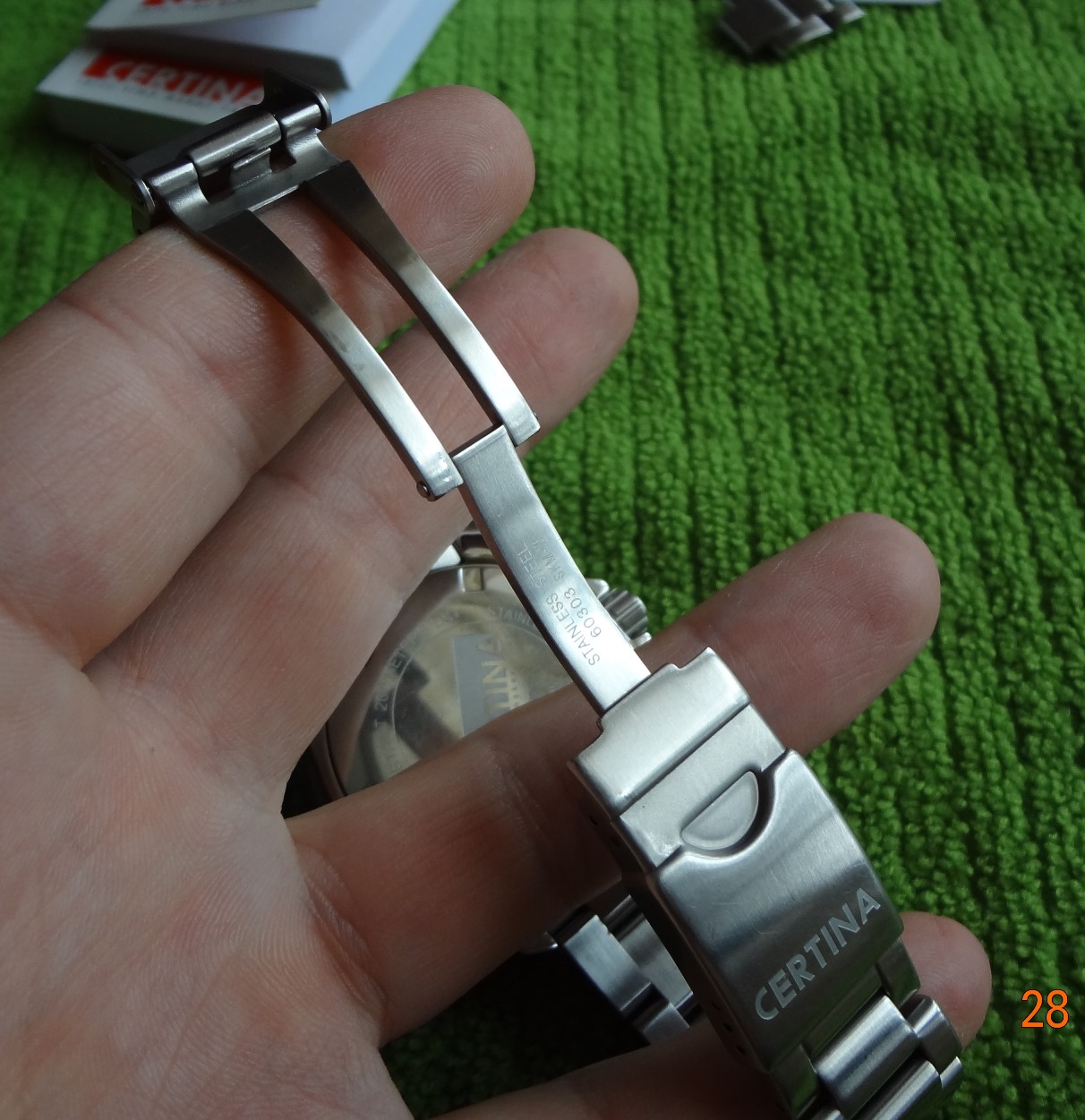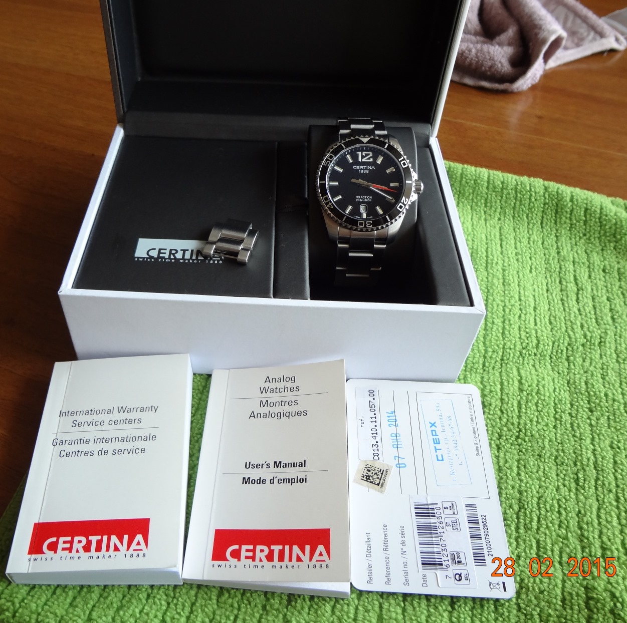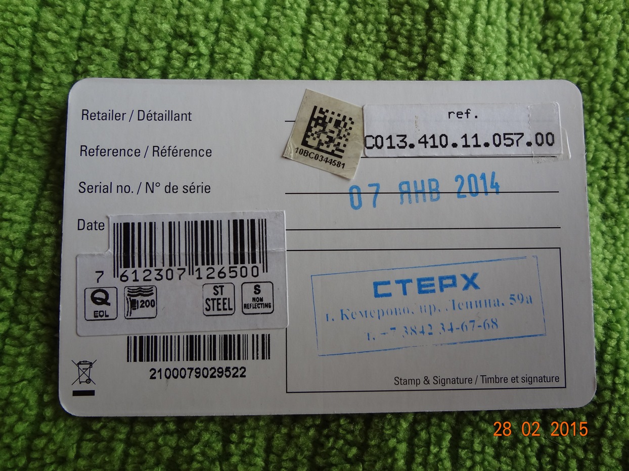 Пол: мужские Год покупки: 2014 БУ часы, состояние: AA (отличное) http://forum.watch.ru/images/market-question.png Полировка: нет Цена: 15 000 руб. (продажа) Коробка: есть Документы: есть Отличный часы на каждый день Certina DS Action http://www.certina.com/ru/collection.../ds-action#m=9 Механизм -кварц. Диаметр - 40,5 мм., толщина - 11,2 мм., вес - 150 гр. ВР-200м. Покупались у Российского оф.представителя, гарантия до 07.01.16 года. Состояние, в целом, отличное, следы носки видны только на застежке и задней крышке. Продаю, так как практически не ношу. Комплект на фото. Часы в Кемерово, отправка по России EMS или курьерской службой. Вложение 933668 Вложение 933669 Вложение 933670 Вложение 933671 Вложение 933672 Вложение 933673 Вложение 933674 Вложение 933675 Вложение 933676 Вложение 933677 Вложение 933678 Вложение 933679 Вложение 933680 |